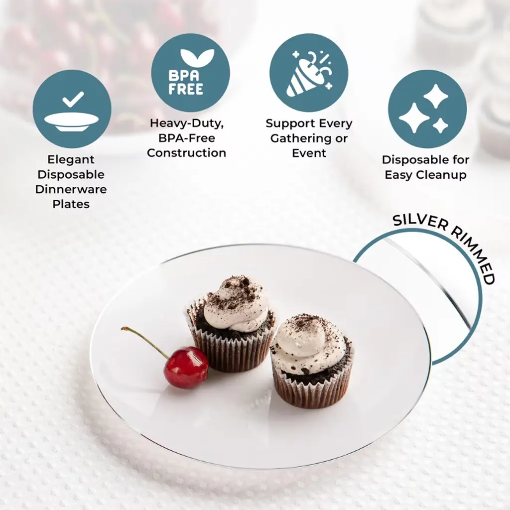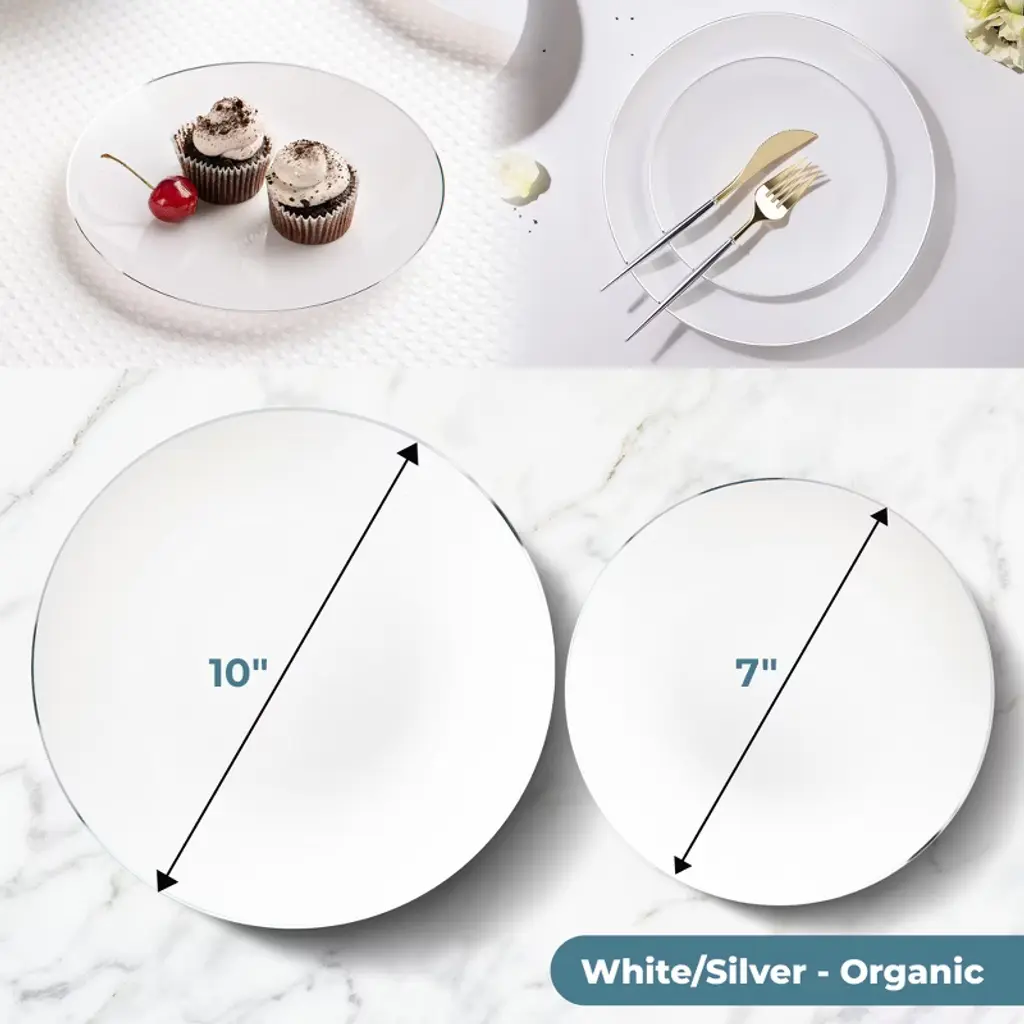 Posh Setting 32 Pack White And Silver Round Plastic Dinnerware Set - 16 Guests - Organic
