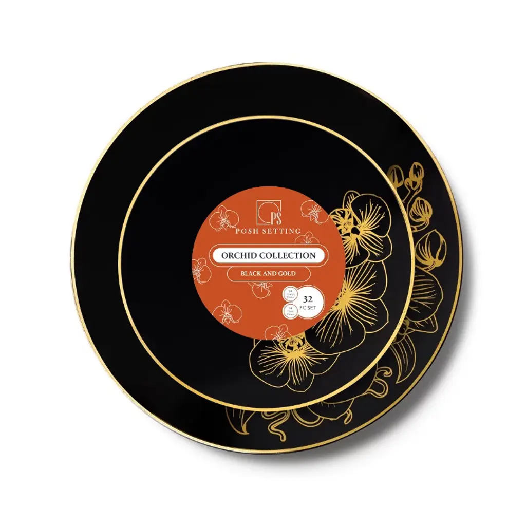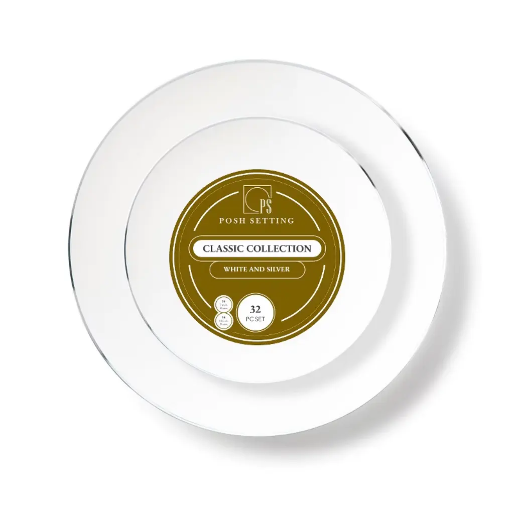 Posh Setting Elegant Disposable Dinnerware Set - 32 Pack (16 Settings), designed to bring elegance and ease to your events. This set includes 16 dinner plates and 16 salad/appetizer plates, each crafted with a beautiful design to elevate your dining experience. Perfect for intimate gatherings, celebrations, or special occasions, this bundle combines style and practicality for a flawless presentation.