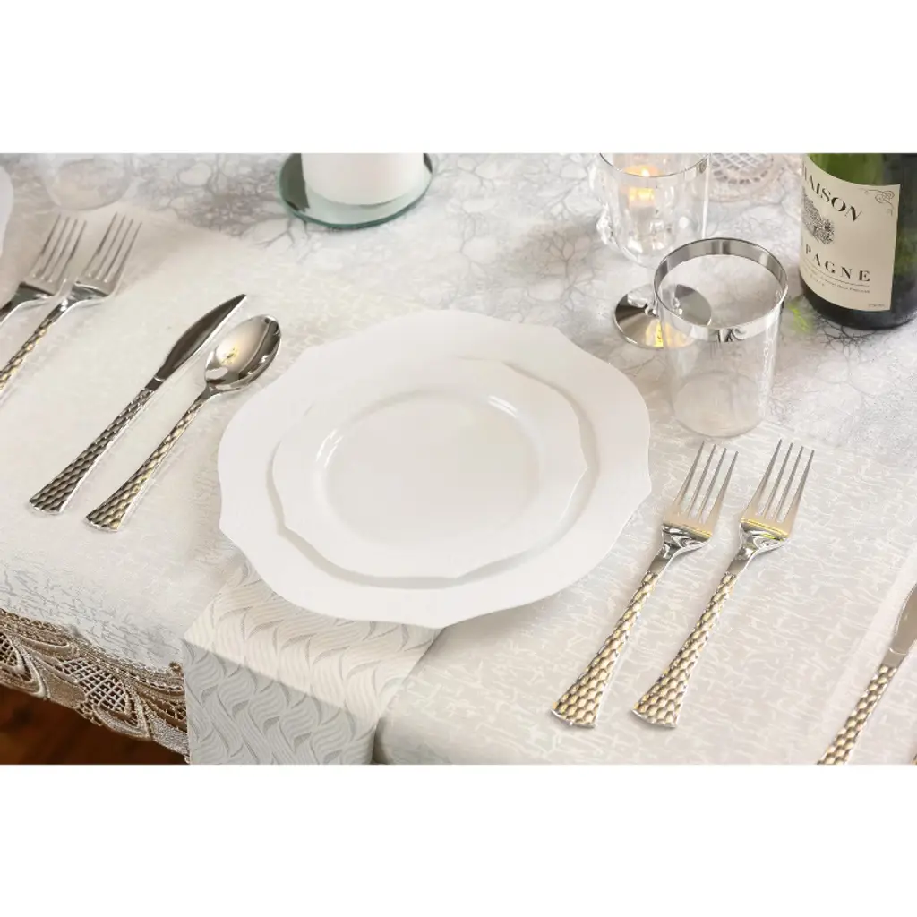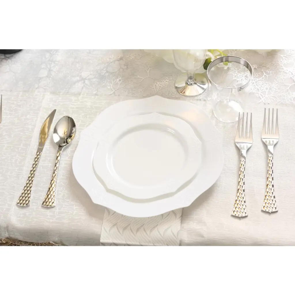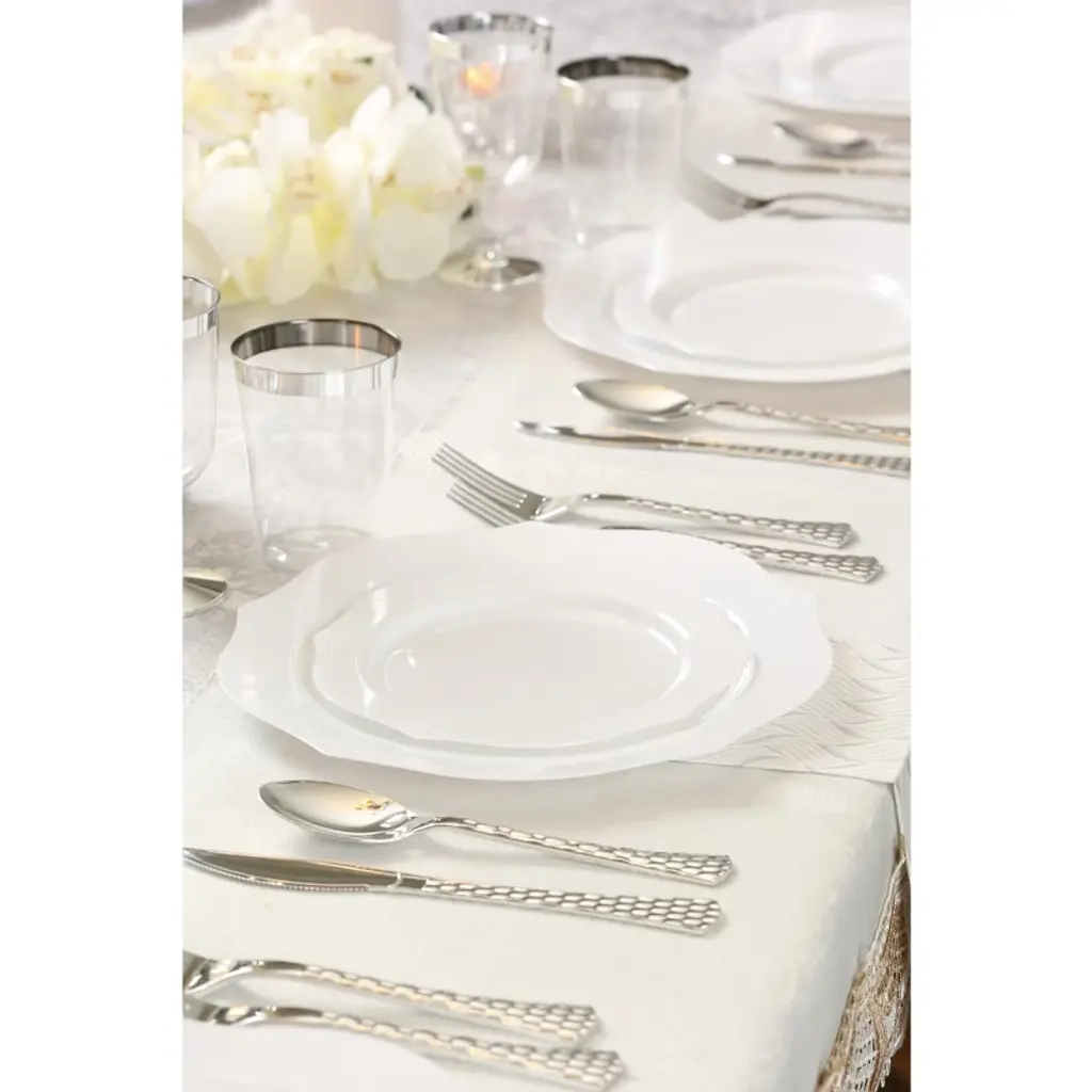 Posh Setting Elegant Disposable Dinnerware Set - 40 Pack (20 Settings), perfect for hosting sophisticated gatherings with ease. This set includes 20 dinner plates and 20 salad/appetizer plates, each featuring a stunning design that adds a touch of luxury to any table. Ideal for weddings, parties, or holiday celebrations, this bundle offers style and convenience, ensuring your event is both elegant and effortless.