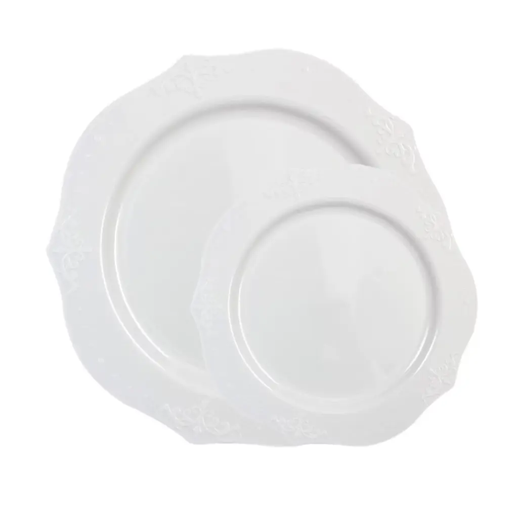 Posh Setting 40 Piece Combo Pack White Round Plastic Dinnerware Value Set - 20 Servings - Antique