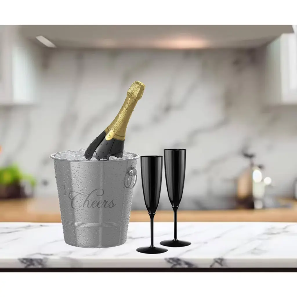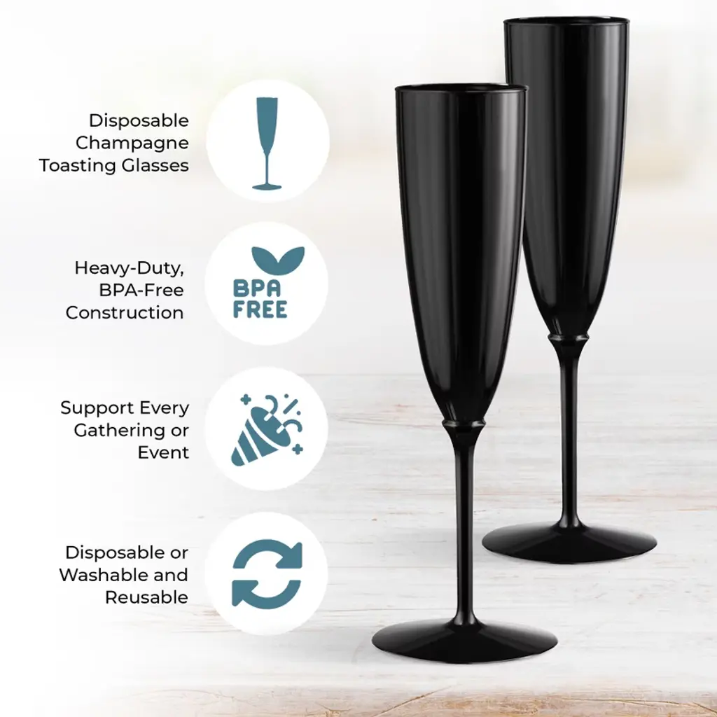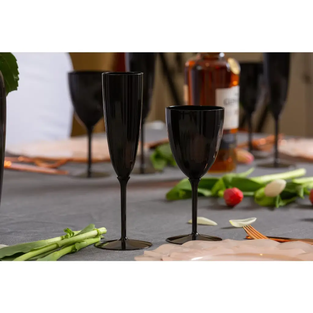 Posh Setting 6 Oz Black Plastic Champagne Flutes - 8 Pack