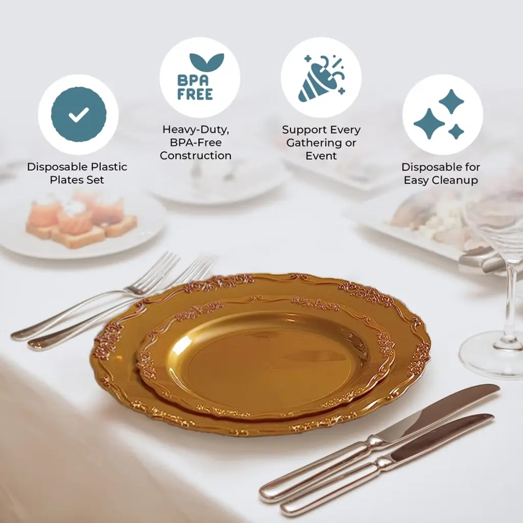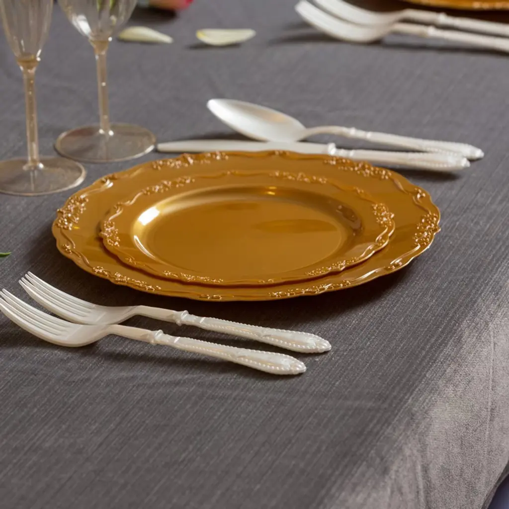 Posh Setting Elegant Disposable Dinnerware Set - 60 Pack (30 Settings), the perfect choice for larger celebrations and upscale events. This set includes 30 dinner plates and 30 salad/appetizer plates, all featuring a luxurious design that enhances any tablescape. Ideal for weddings, banquets, or festive gatherings, this bundle combines elegance and practicality to make hosting effortless and memorable.