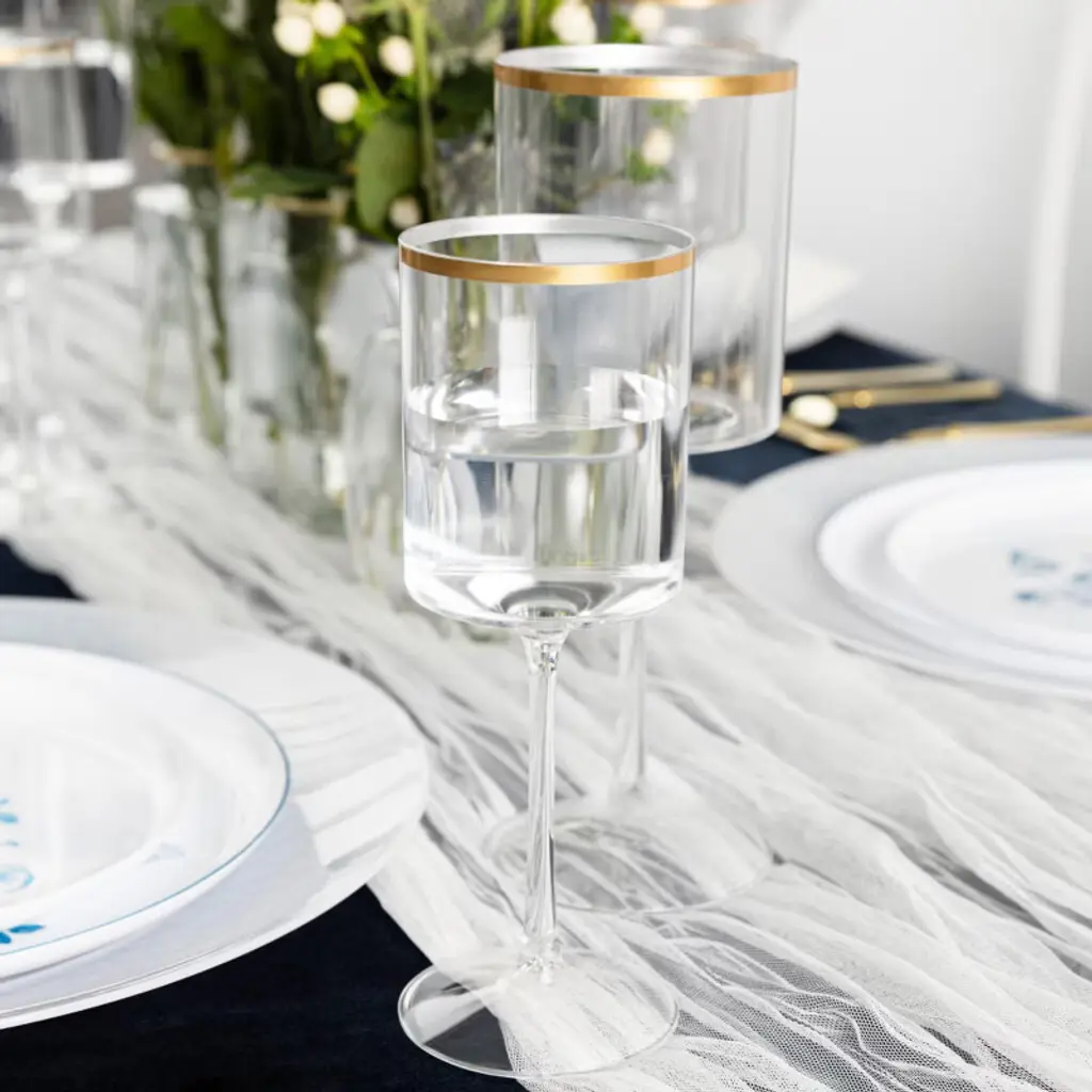 Posh Setting 9 Oz Clear With Gold Rim Plastic Disposable Stemmed Wine Cup - 5 Pack