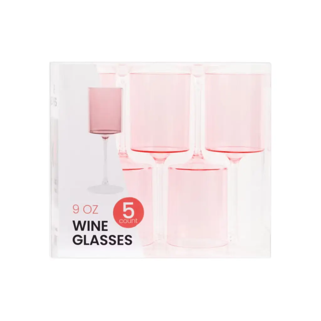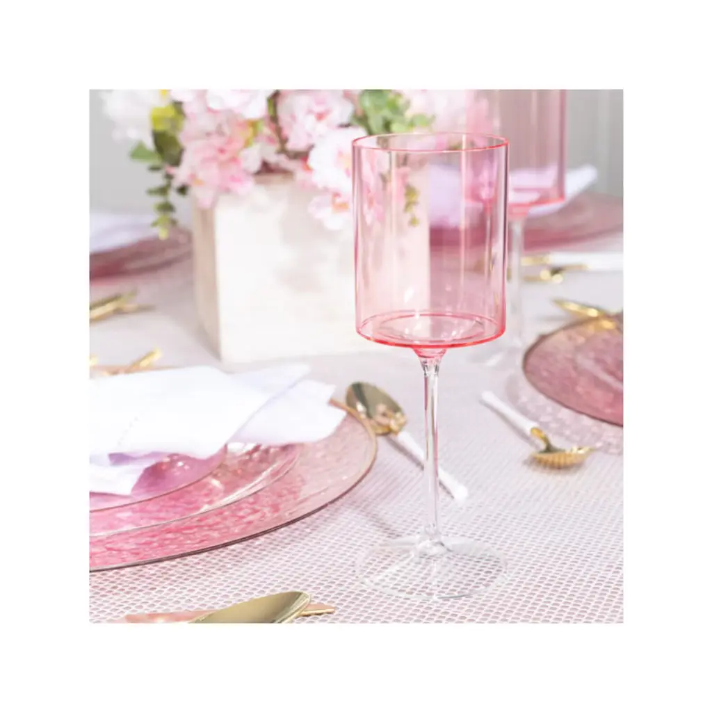Posh Setting 9 Oz Two Tone Pink/clear Plastic Disposable Stemmed Wine Cup - 5 Pack