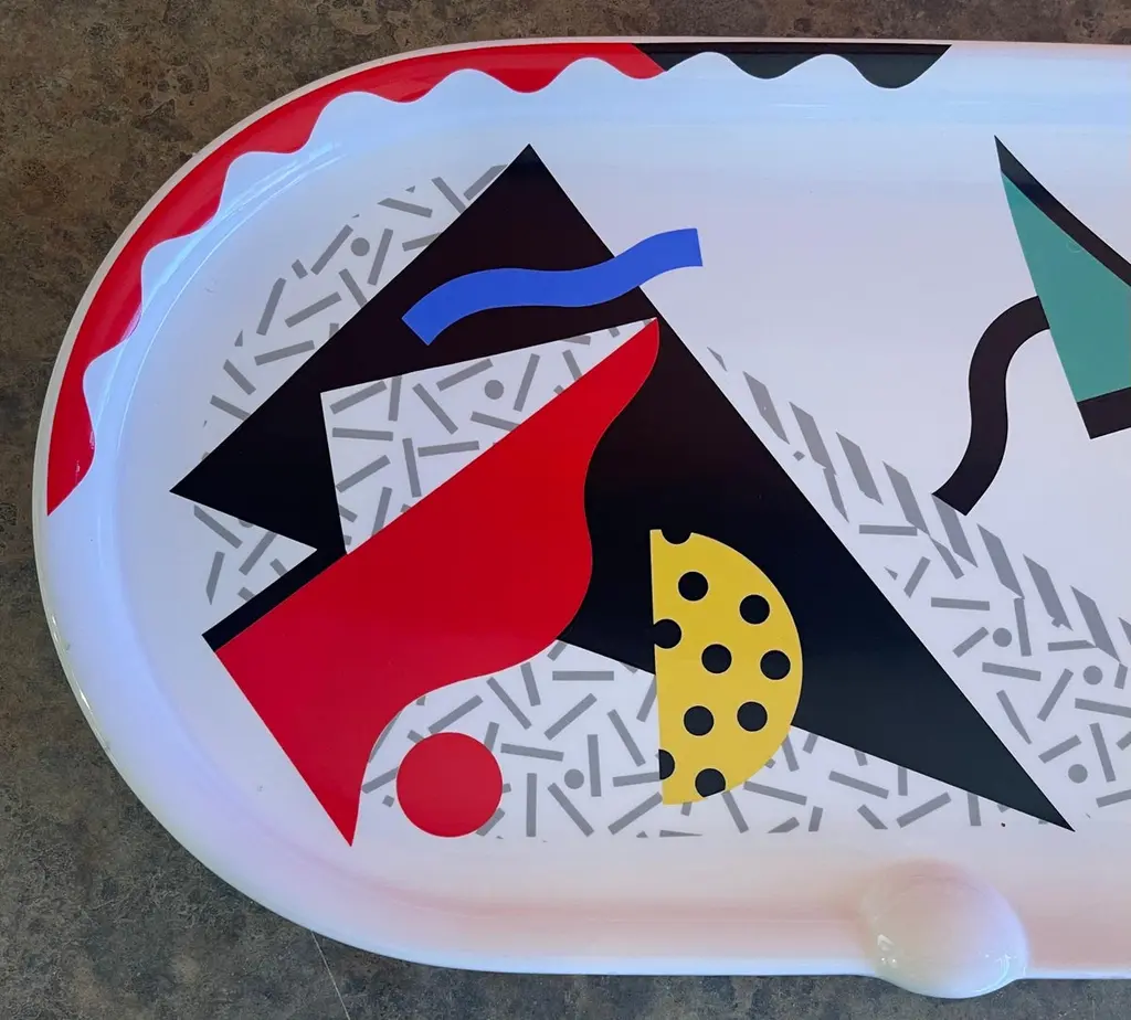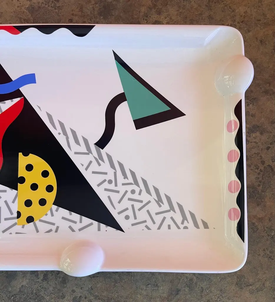 Post modern / Memphis "Carnival" platter / serving dish by Kato Kogei for Fujimori, circa 1980s. Wonderful colorful Memphis style! #1817.