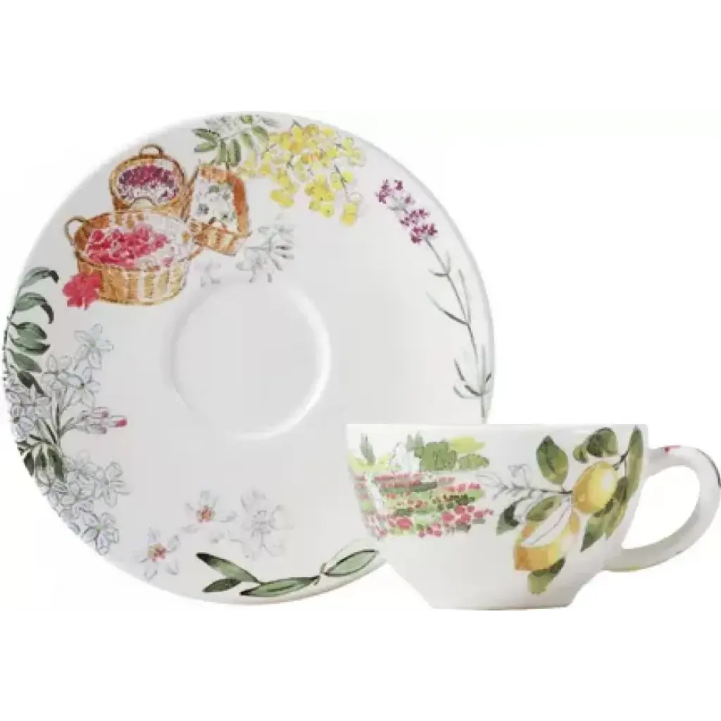 Celebrate the bounty of the harvest with Potager dinnerware. Garden vegetables grace the dinner plates and chargers, with a snappy pinstripe background in blue, gold or red. Designed by Alberto Pinto. One of France’s best-known interior designers, Alberto Pinto has designed not only homes but also yachts, private jets, luxury hotels, and restaurants. His work has been called the "haute couture of interior decorating." His prolific creations range in style from modern to classical to Asian-inspired and floral themes, and all of them are executed superbly on Limoges porcelain to create art for your table.