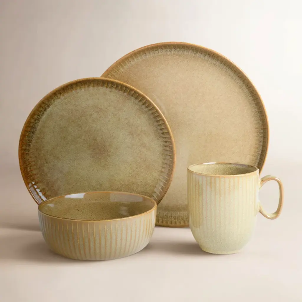 Prado 4-piece Tan Dinnerware Set With Pasta Bowl With Reactive Glaze