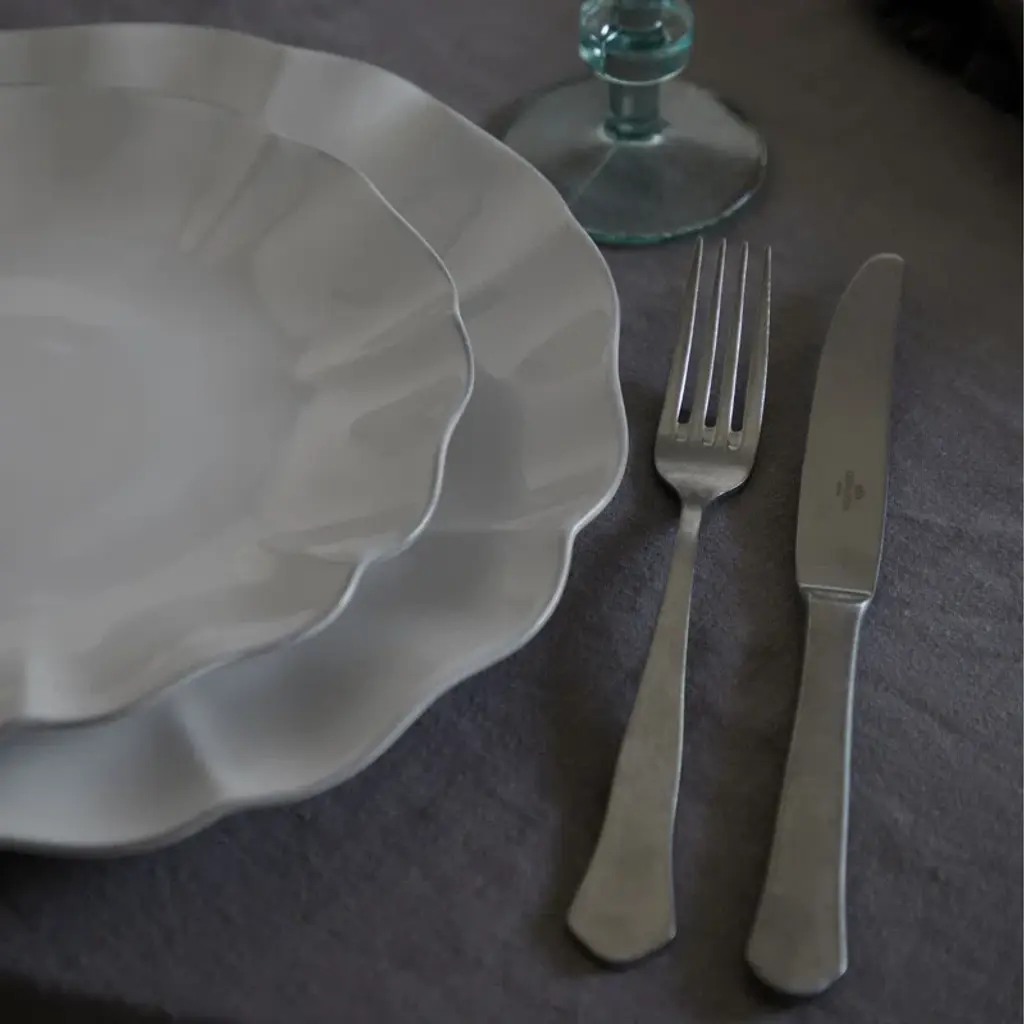 Made from high-quality stainless steel (18/10), our flatware collections are crafted for exceptional durability. A sustainable choice for constant everyday use. The collections feature timeless designs with a contemporary touch. Each piece is precision-crafted for exceptional durability and weight for the perfect balance. flatware also includes PVD coatings, allowing a perfect combination with different settings and styles. Finished with unique curved lines, Prado showcases a classic design with a relaxed, vintage finish that will look perennially stylish on your dinner table. The knife presents a solid handle for a durable experience.