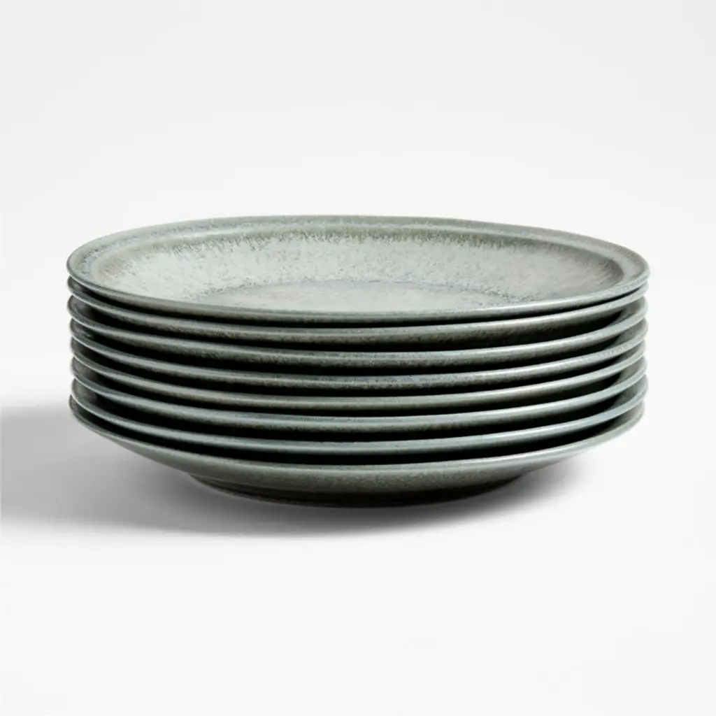 Prairie Moss Green Recycled Stoneware Salad Plates, Set Of 8