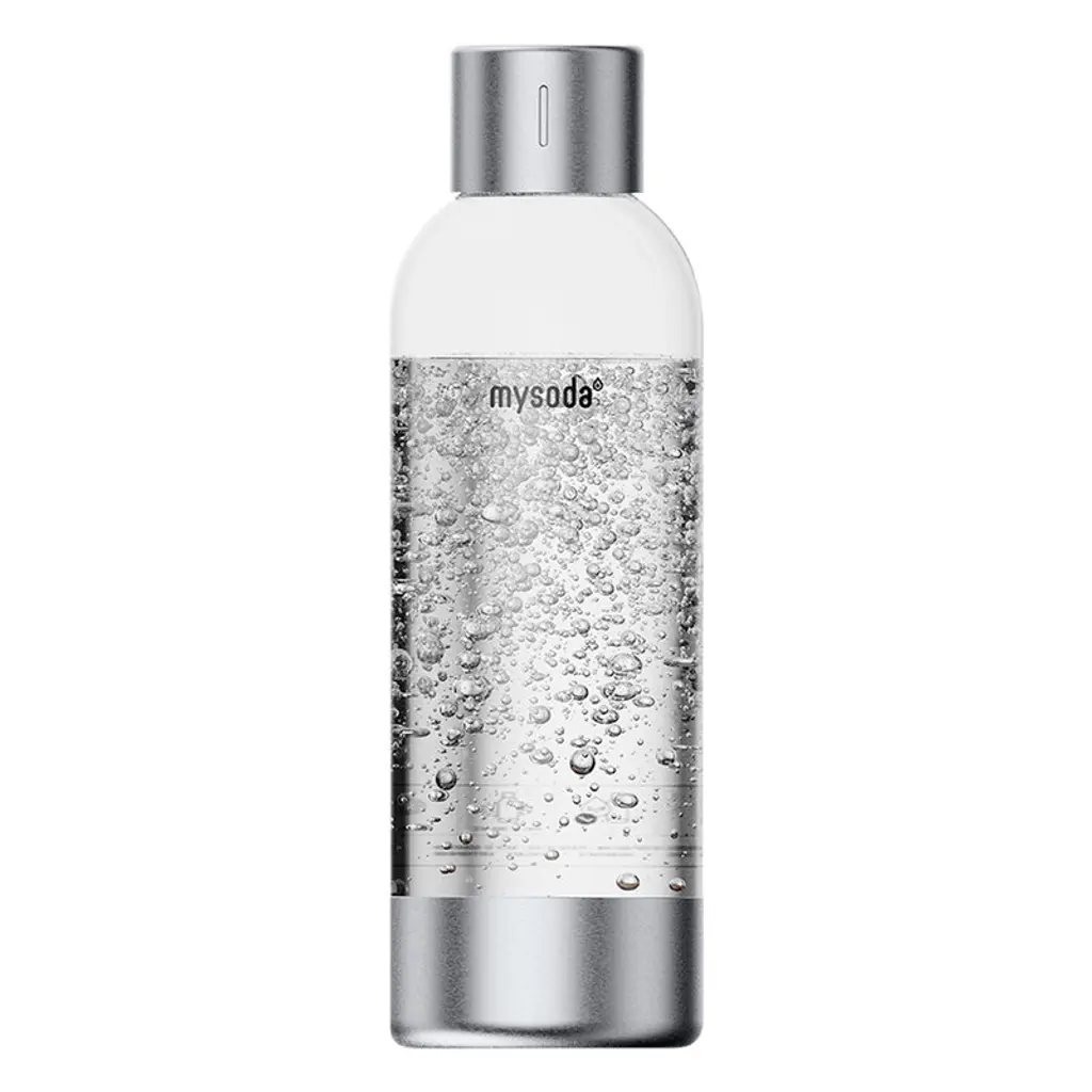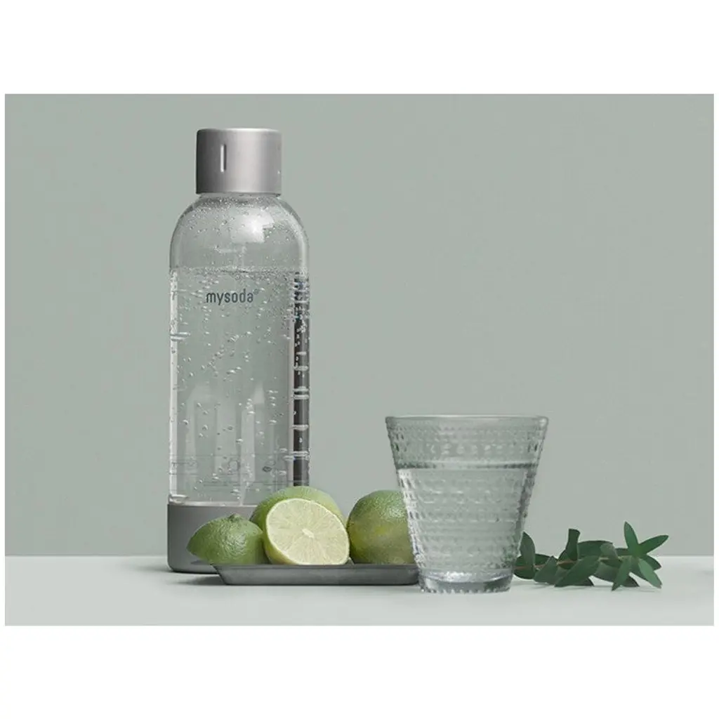 Mysoda's Premium water bottle makes a stylish and practical add-on to your Mysoda sparkling water maker. The bottle has a quick-lock mechanism that ensures fast and easy use, and when your sparkling drink is done, you can put on the cap and throw the bottle in your bag. The Premium bottle is made of BPA-free plastic and finished with a cap and bottom made of stainless steel, making it the ideal pair for the Mysoda Ruby sparkling water maker. In addition to Ruby, the one-liter bottle is also compatible with all other Mysoda devices. Please note that the water bottles used in Mysoda sparkling water makers have an expiration date. The bottles are designed to withstand high pressure, but it is characteristic for plastic to harden over time. When it becomes too hard, it can no longer expand when water is carbonated. For this reason, all Mysoda bottles have an expiry date and should no longer be used after it.