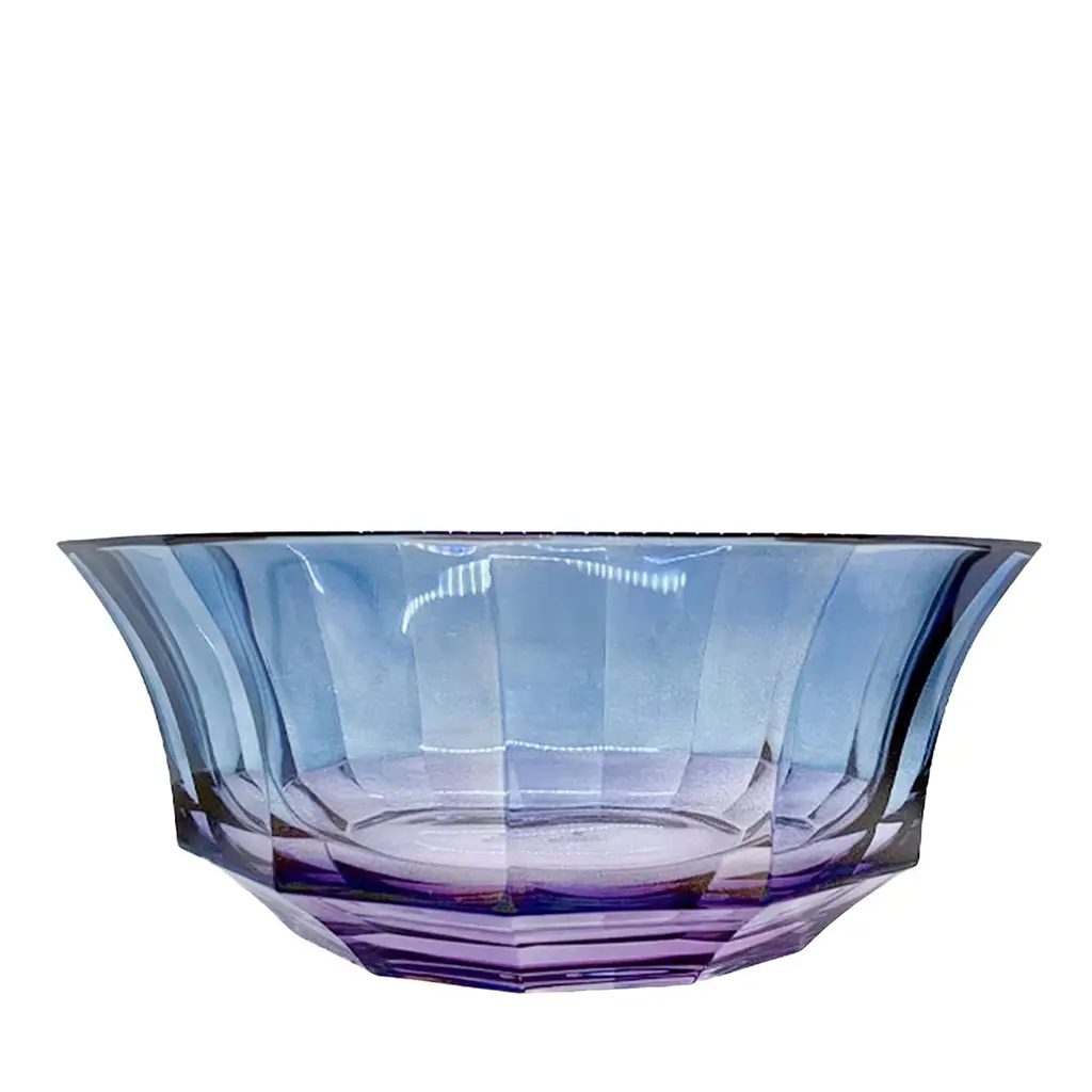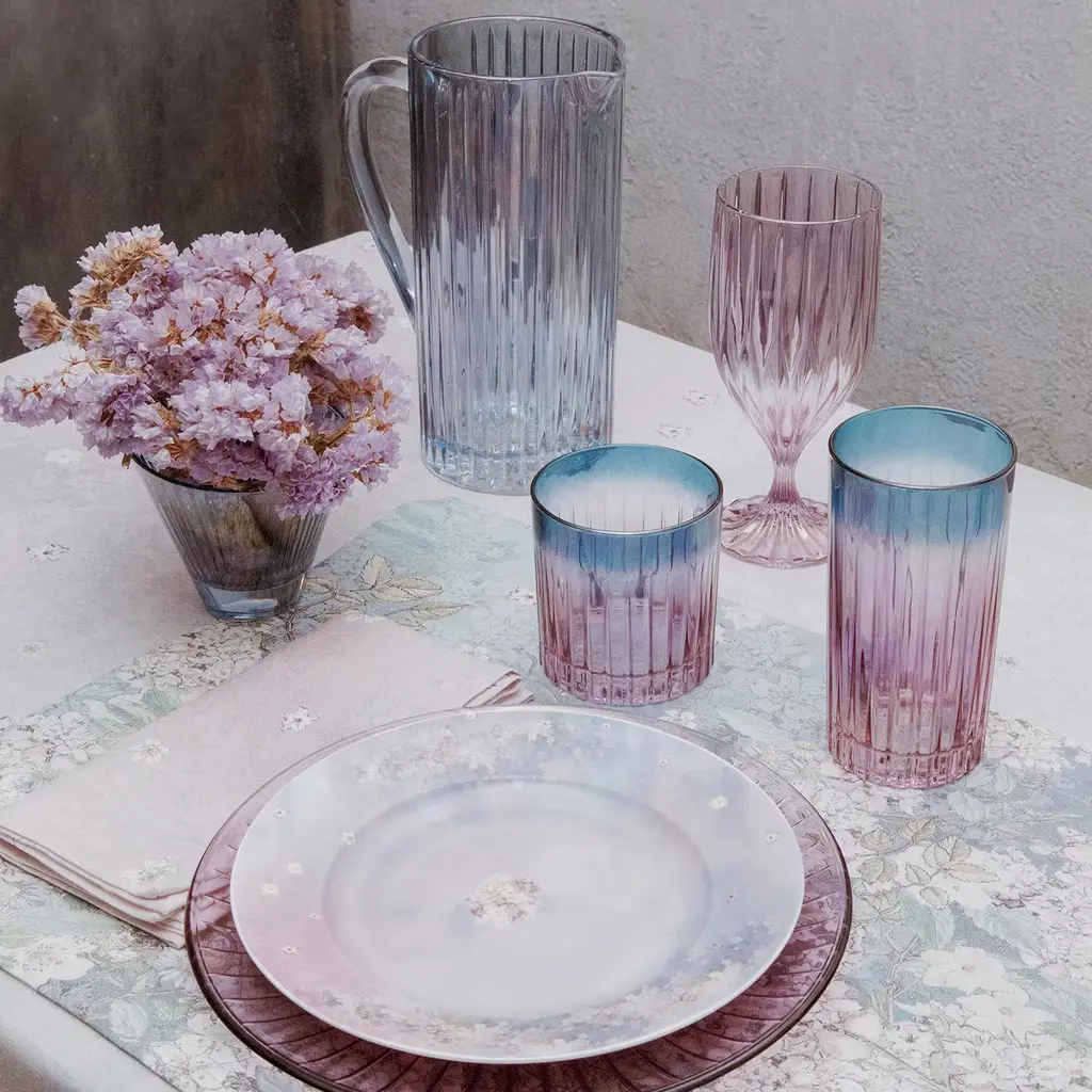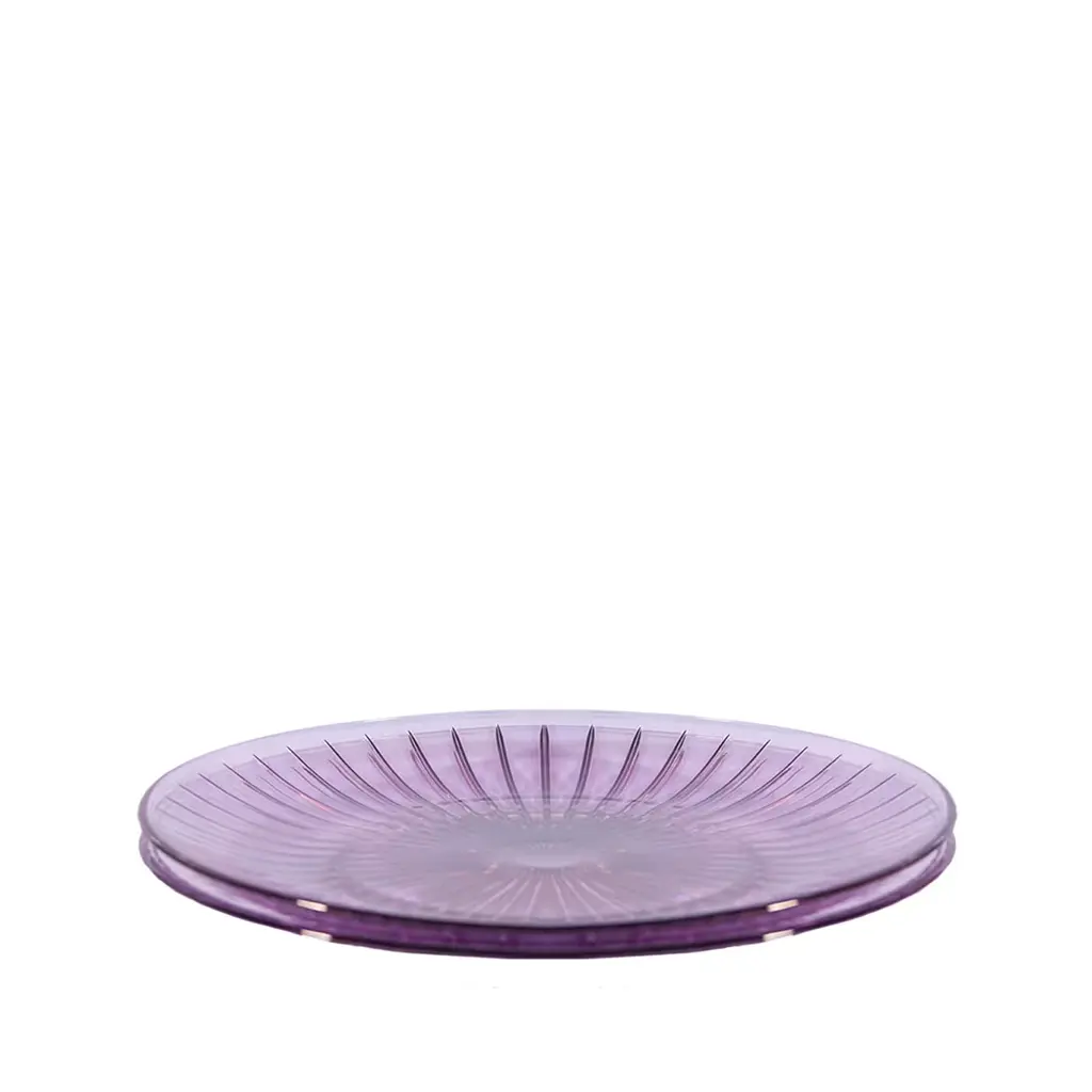 Imbued with a glamorous flair, this precious set composed of two dinner plates is fashioned using only top-quality glass in a vibrant tone of purple. Their external surface showcases an intriguing texture, the grooves radiating from the center to mimic the rippling pattern when hit by a light source. This set can be combined with other colorful versions of the Prestige series for a dynamic look.