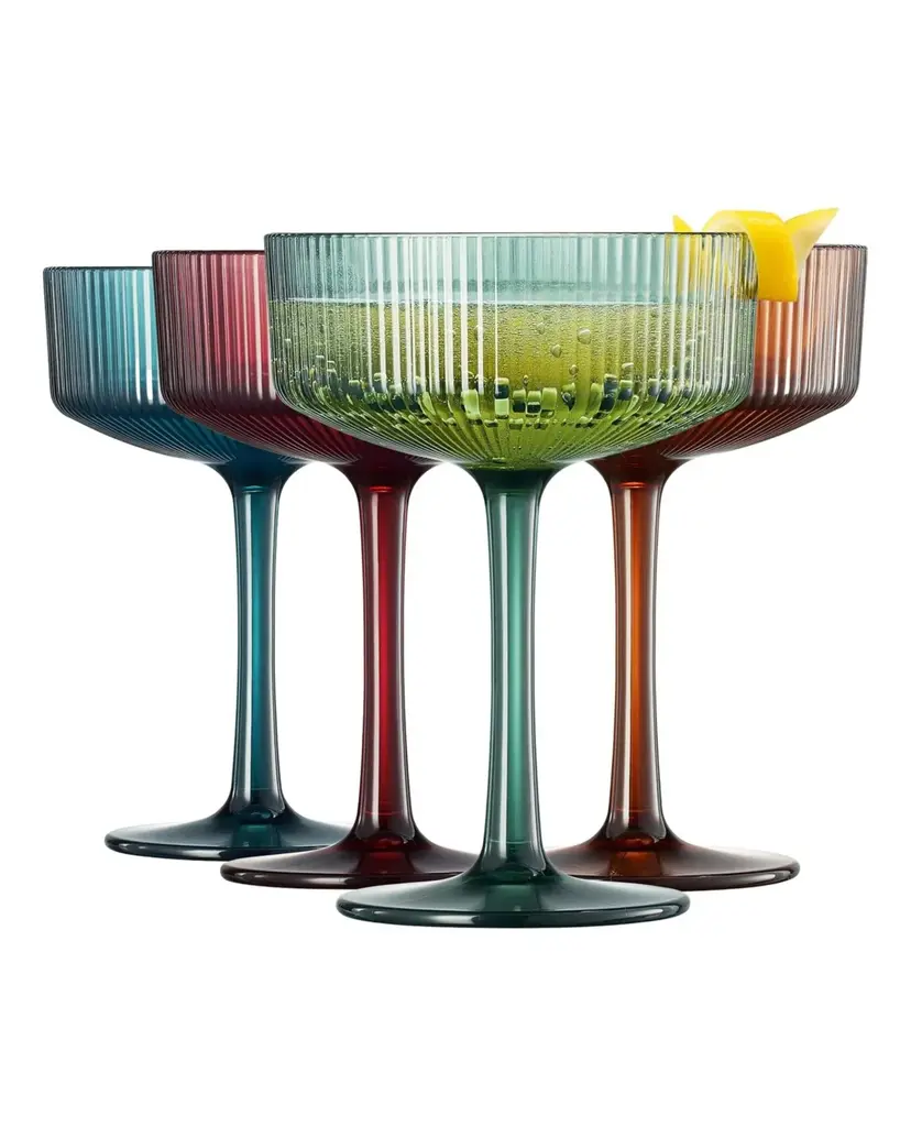 An ideal set of wine glasses to add a dash of color to both a traditional and modern dining table, each piece is exquisitely handcrafted of crystal boasting six different hues for each glass. All of the glasses are also decorated by hand, featuring a splendid etched pattern that covers the bottom part of the bowl, the stem, and the round foot.