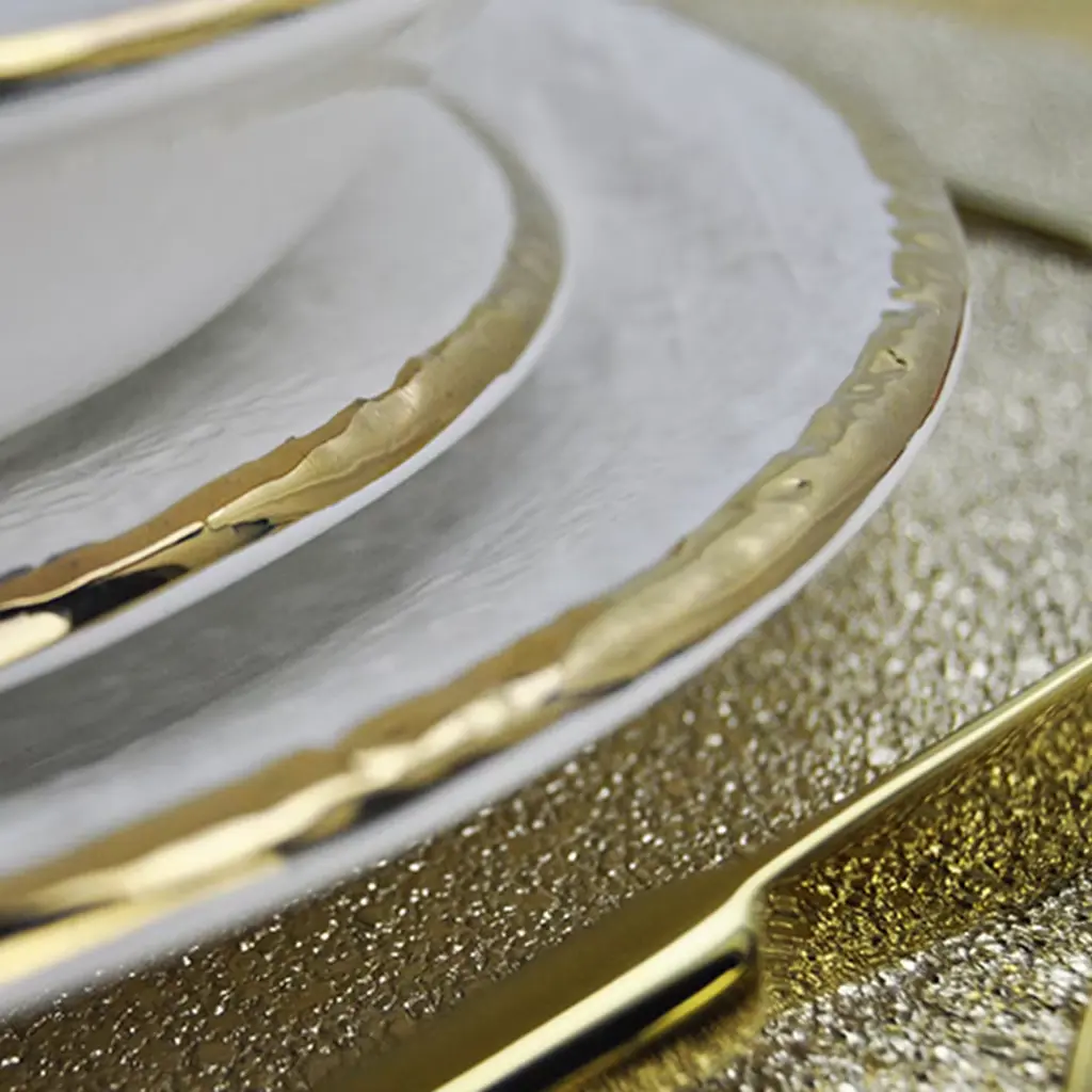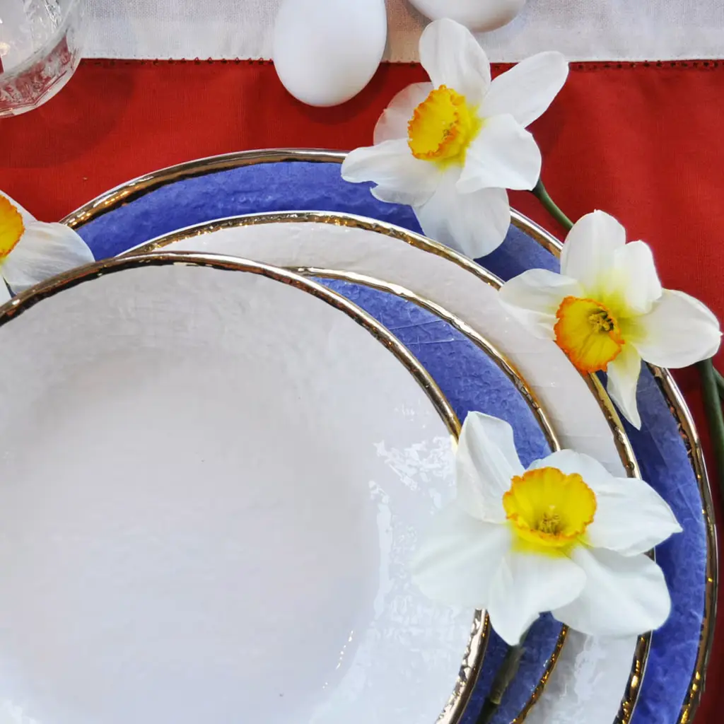 Fancy yet bold bold with a golden touch, this 18 piece Preta Oro ceramic dinner set will add character and color to your dining table. The set features a 26 cm dinner plate, a 20 cm dessert plate and a 21 cm soup bowl, in milk white with a golden rim. D ishwasher-safe.