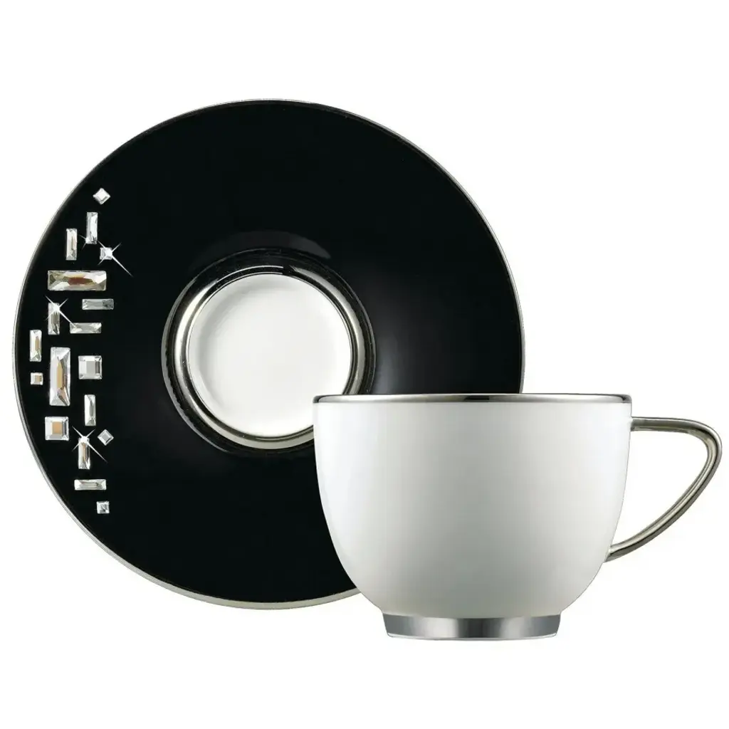 Like the classic grace of a Royal wedding, Princess china is a fairy tale marriage of pure white china and sparkling crystals. A mix of stylish design and refined decor, simple gold or platinum lines provide a frame for a field of perfect gemstones. A truly one-of-a-kind statement, Prouna Jewelry china makes a great wedding gift, and is sure to become a prized family heirloom. Prouna Jewelry marries the beauty of fine bone china dinnerware with the sparkle of Swarovski Crystal Elements. Sculptural white china serves as an elegant base to hand-painted designs, gold and platinum ornamentation and dazzling arrays of Swarovski crystals. With several patterns to choose from, each with its own unique story, you're sure to find one you love. The crystals are attached with a special method that is tested dishwasher safe. A true marriage of technology and style, Prouna Jewelry Dinnerware is the height of luxury.
