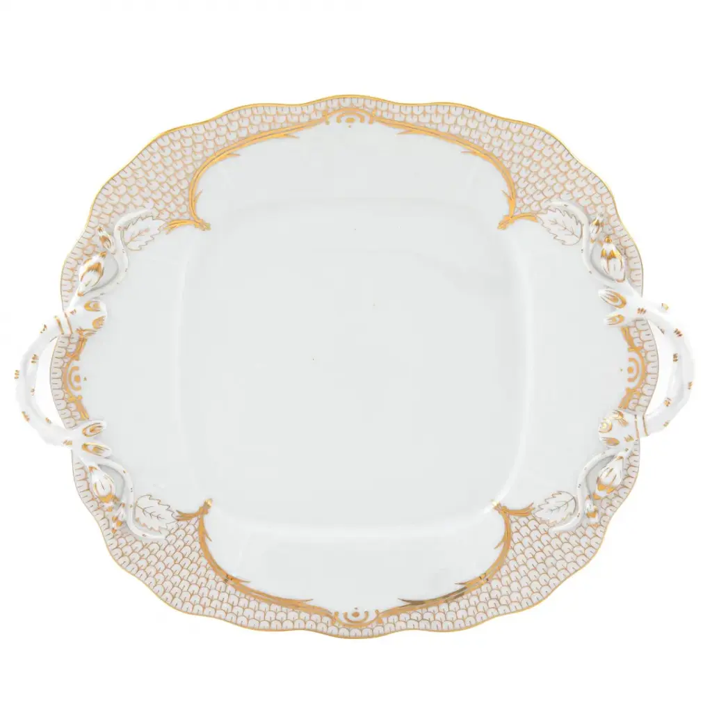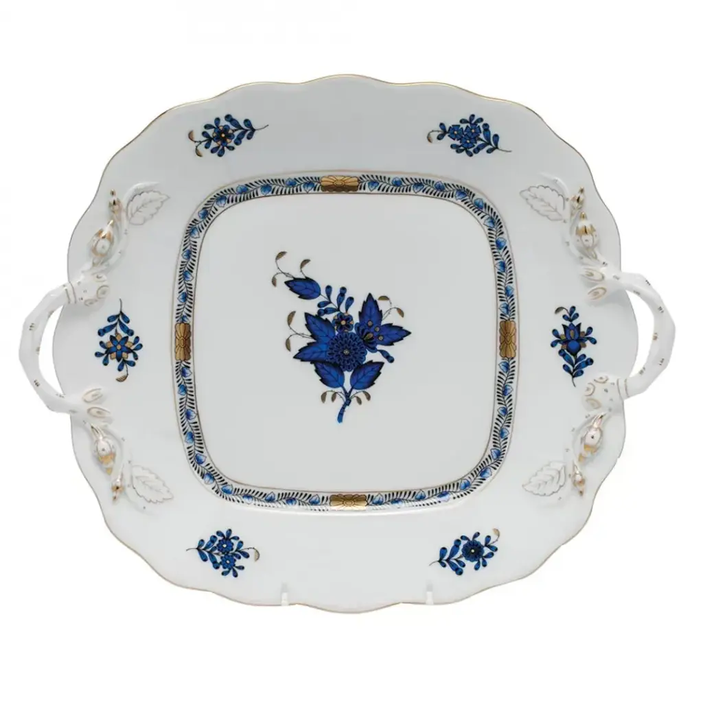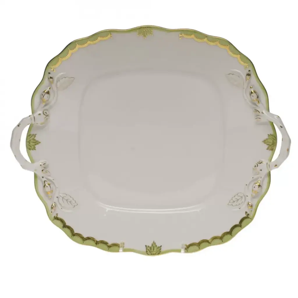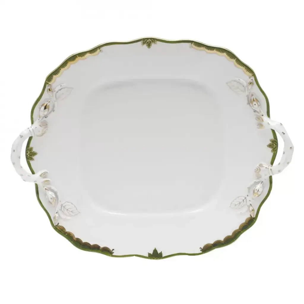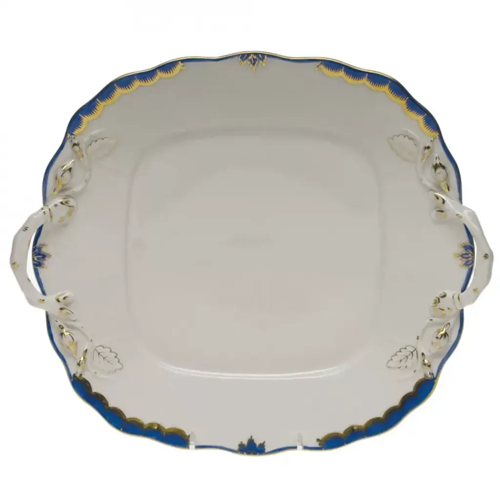 Princess Victoria Turquoise Square Cake Plate With Handles 9.5 In Sq