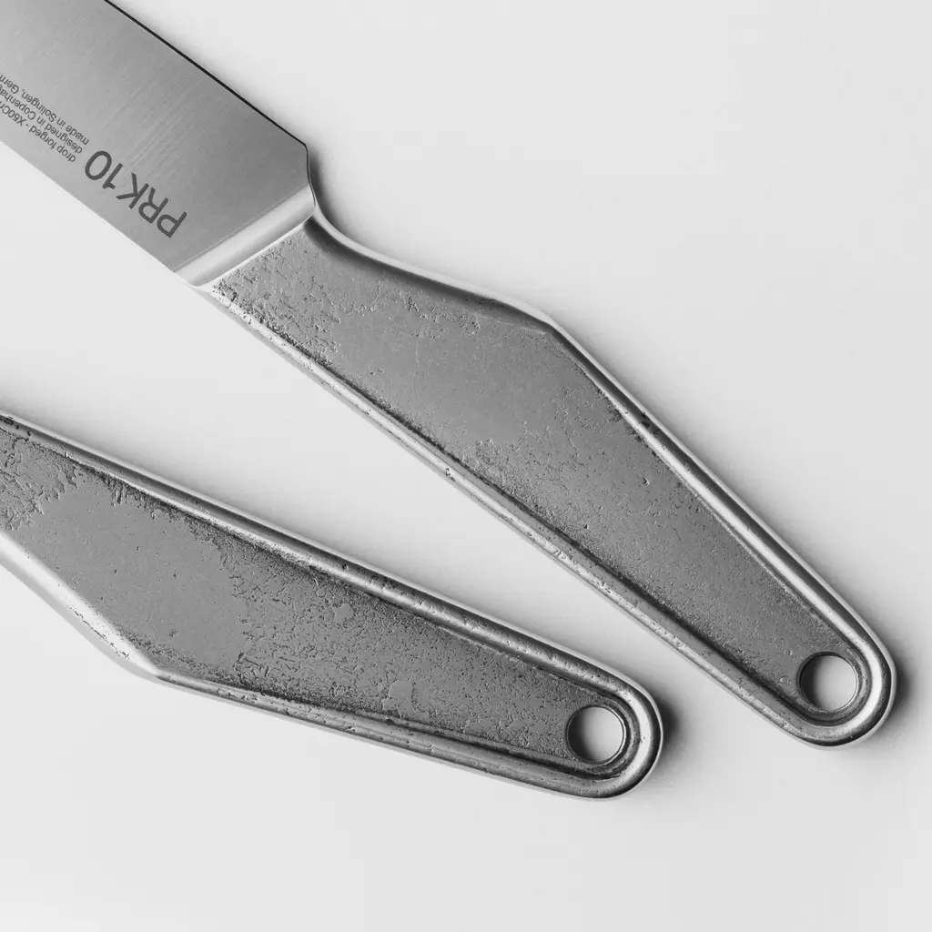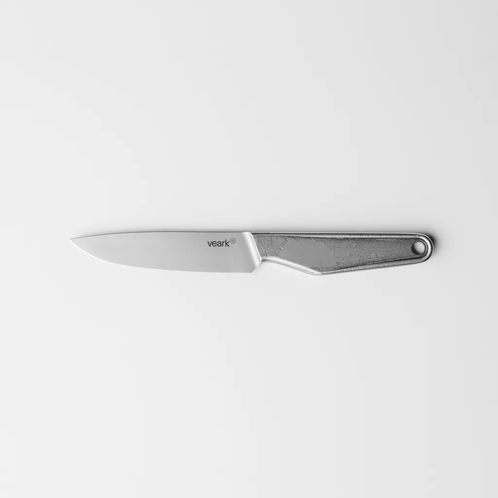 A ubiquitous tool in any kitchen, the paring knife can do a lot of jobs with precision, from cutting to chopping. The Veark PRK10 Forged Paring Knife also offers excellent craftsmanship and an industrial-style design. A smaller version of the classic chef’s knife, this paring knife is comfortable to hold and to use for a variety of cutting tasks. Plus, PRK10 is specially crafted to last. Made in Solingen, Germany, each Veark knife comes to life through the traditional, drop forging technique. The single-piece steel knife has an ergonomic open handle with distinctive textures and an extra-hard blade that stays sharp for longer. Fully symmetrical, this Veark paring knife suits left- and right-handed use.