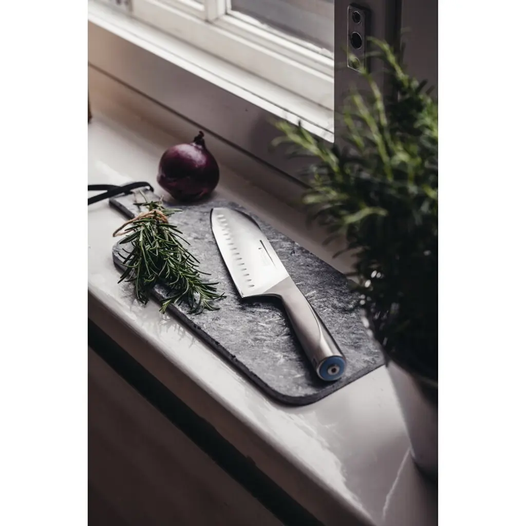 The Heirol Pro Balance Santoku knife is characterized by an innovative, customizable design: the knife can be balanced to fit your own preferences. The handle of the knife can be unscrewed and the weights inside it moved or added so that the knife feels as comfortable as possible in the hand. The knife's center of gravity can also be changed to suit each task: for example, for chopping, it can be moved more towards the blade and when slicing, away from it. The Pro Balance knives are also color-coded to make it easier to pick the right knife from the knife block.