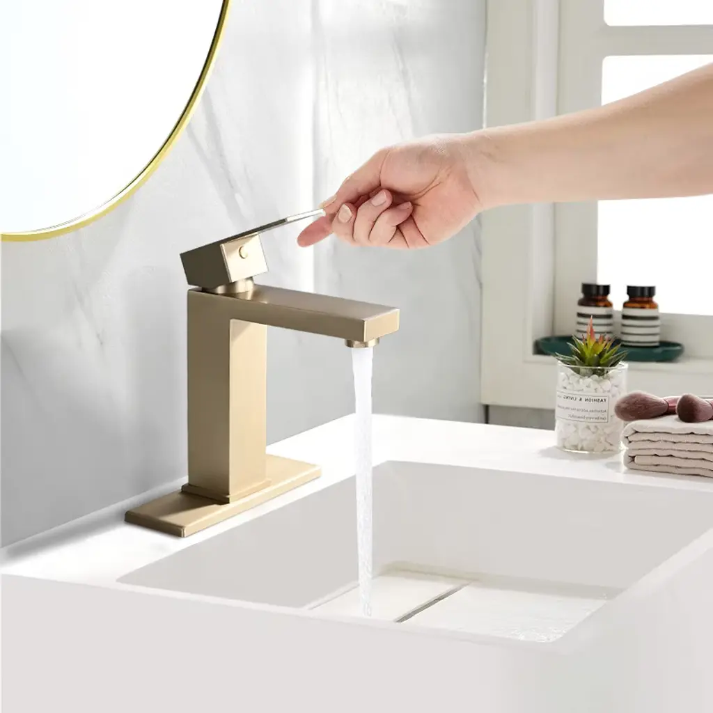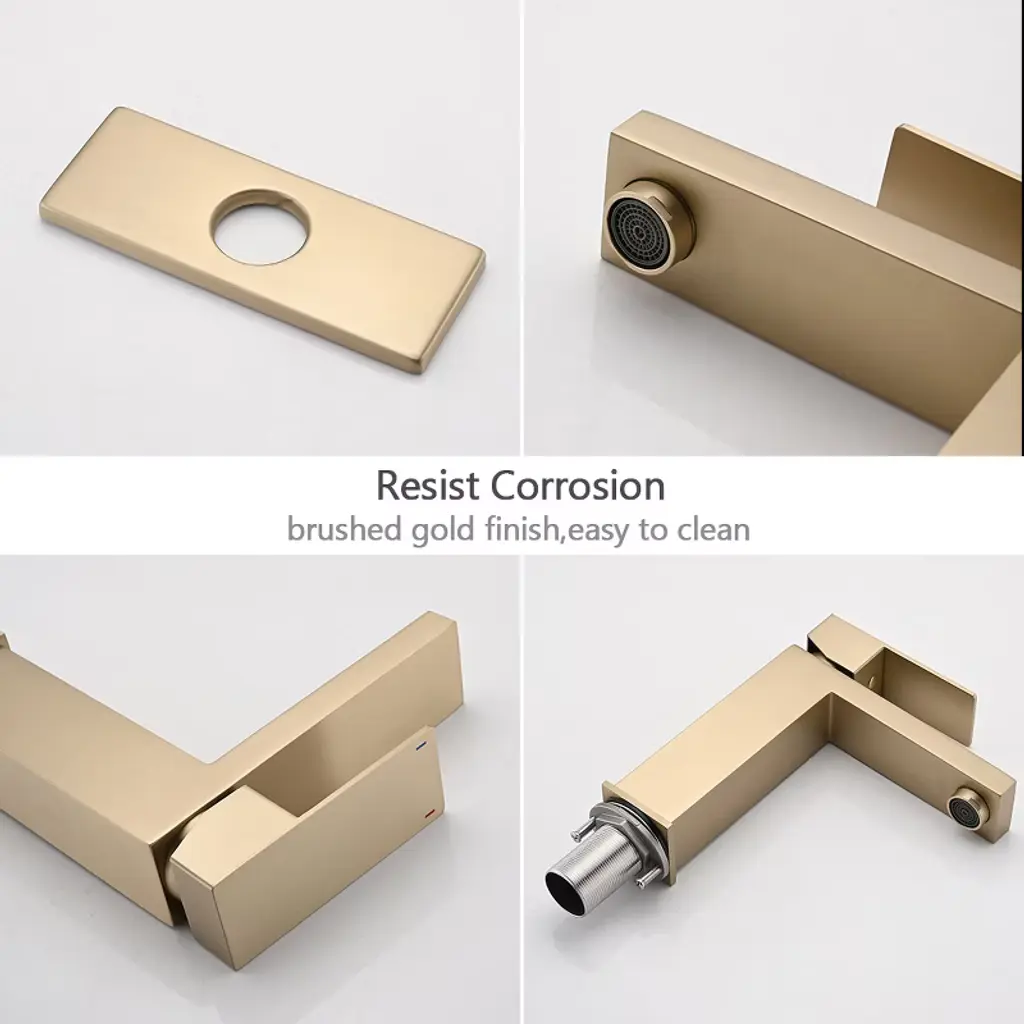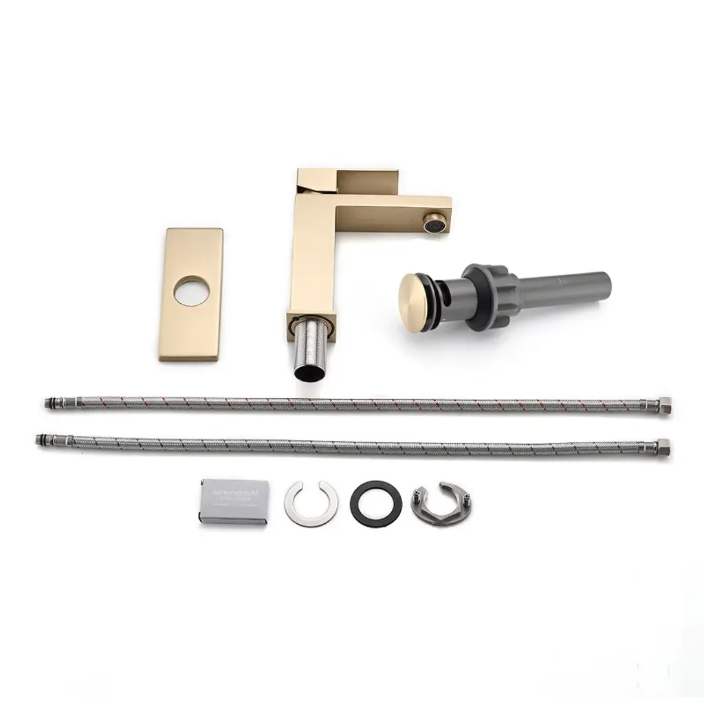 Proox Single-handle Single Hole Bathroom Faucet With Deck Plate And Drain Assembly In Brushed Gold