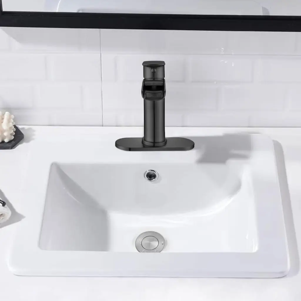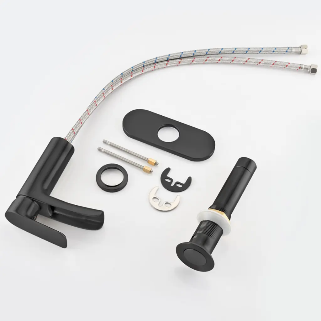 Proox Single-handle Single Hole Bathroom Faucet With Deck Plate In Matte Black