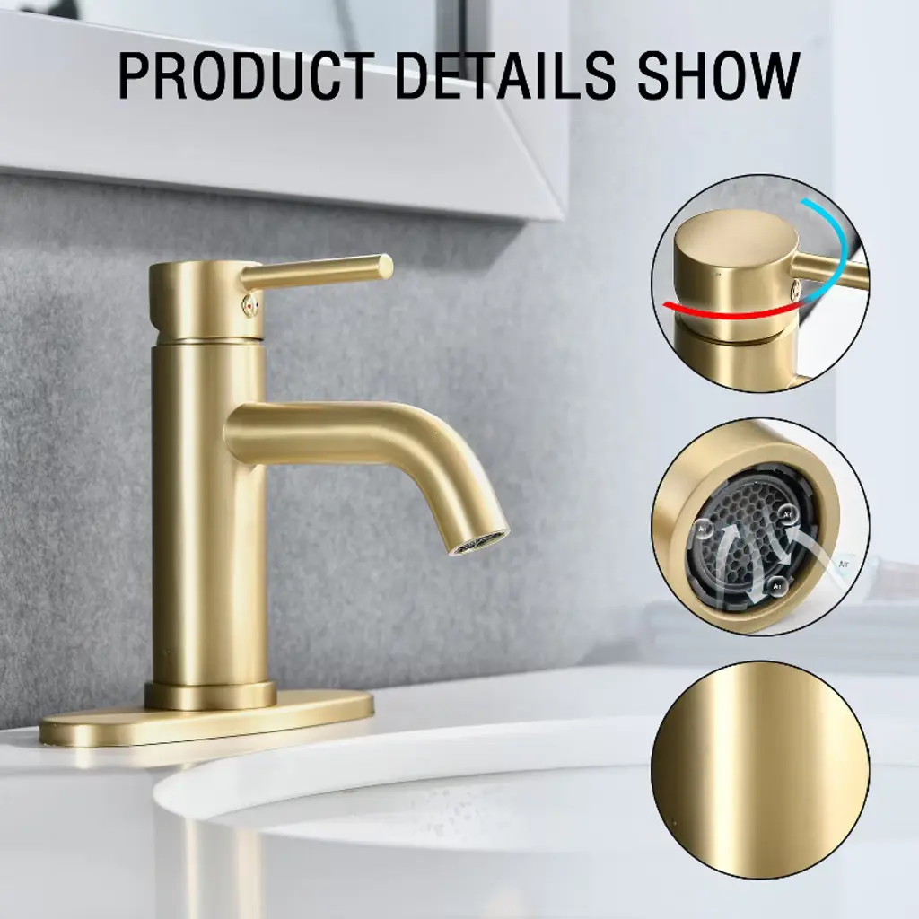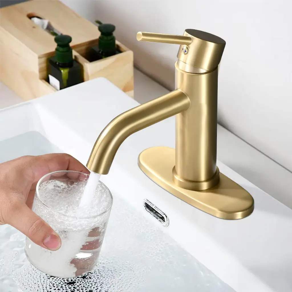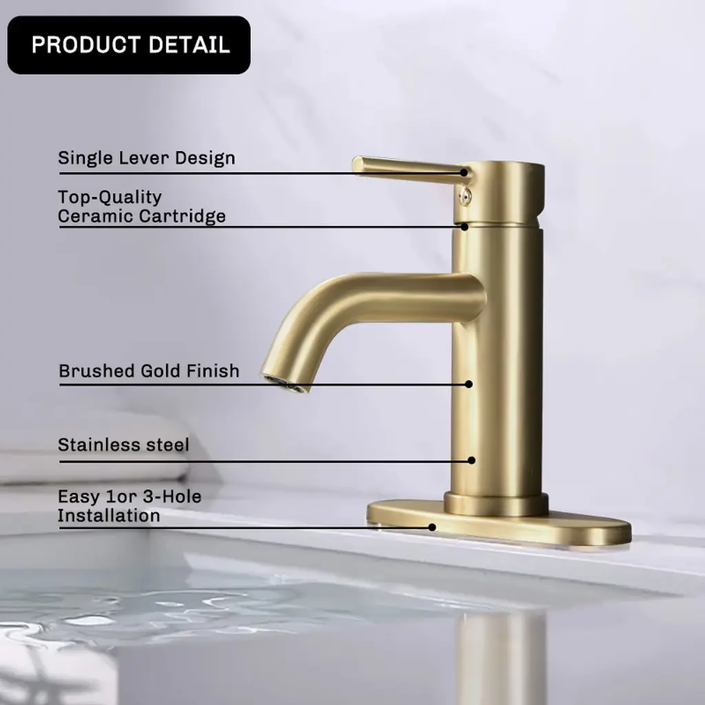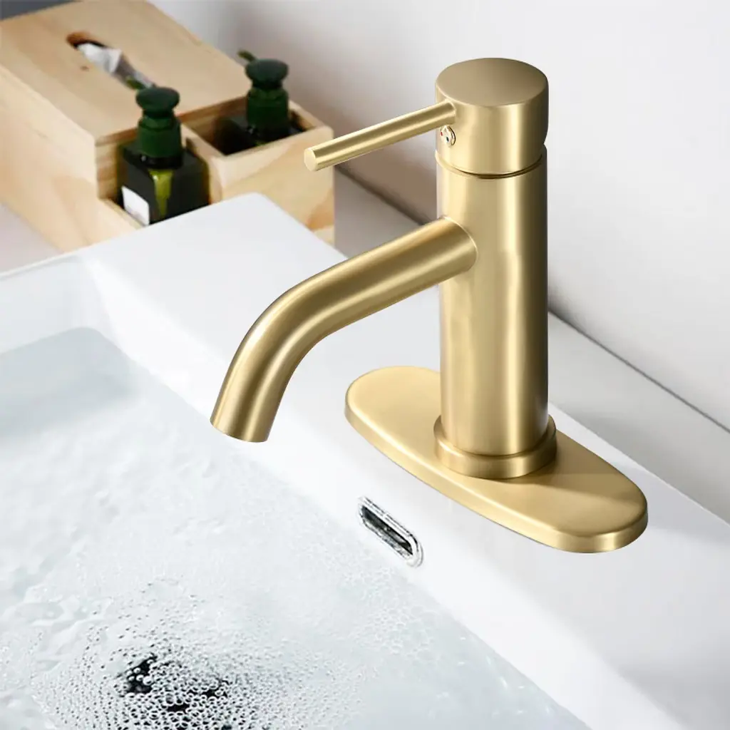 Proox Single Handle Single Hole Bathroom Faucet With Deckplate Included In Brushed Gold