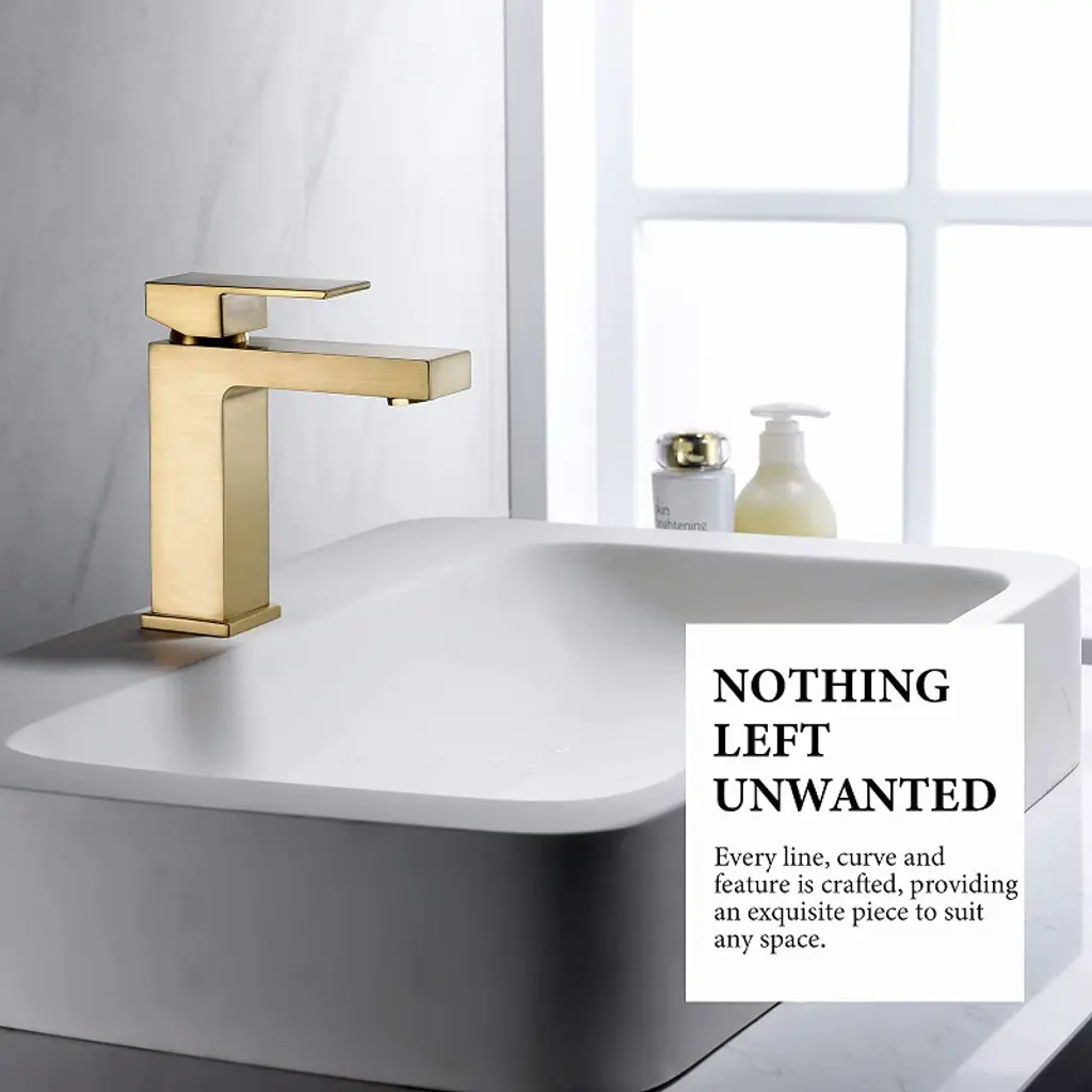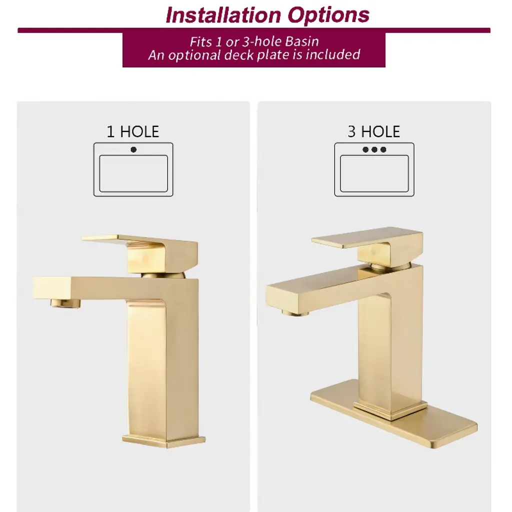Proox Single Handle Single Hole Deck Mount Bathroom Faucet With Deckplate And Drain Kit Included In Brushed Gold
