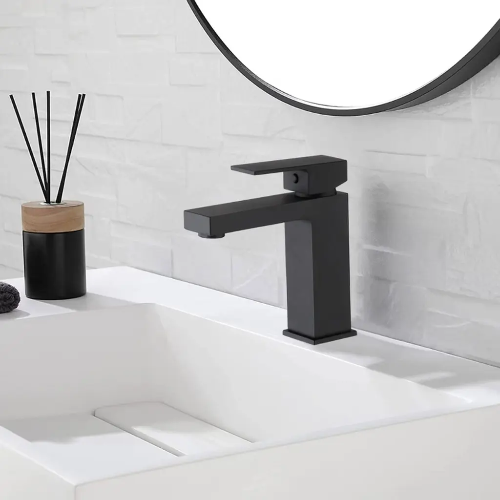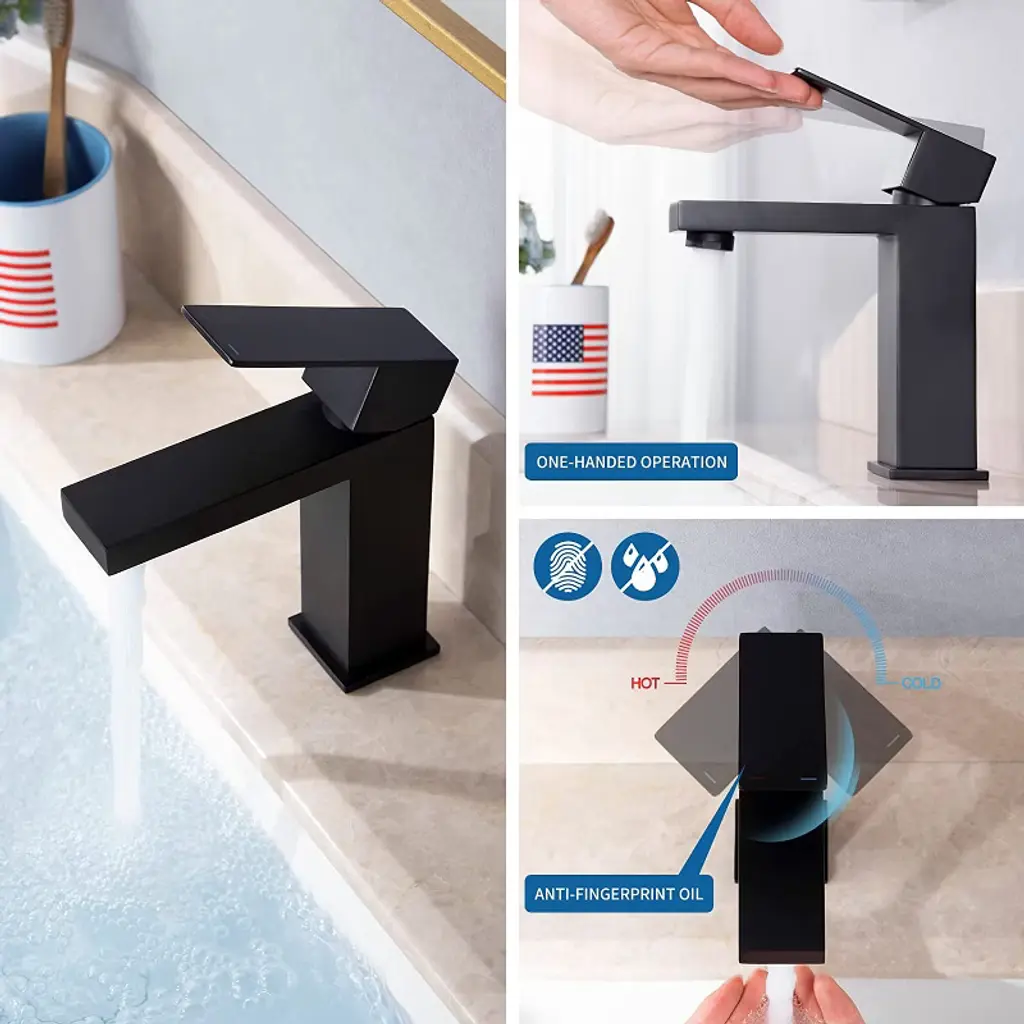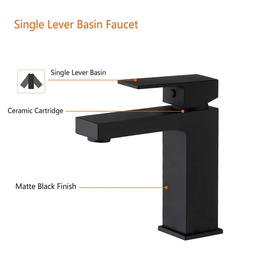 Proox Single Handle Single Hole Deck Mount Bathroom Faucet With Deckplate And Drain Kit Included In Matte Black