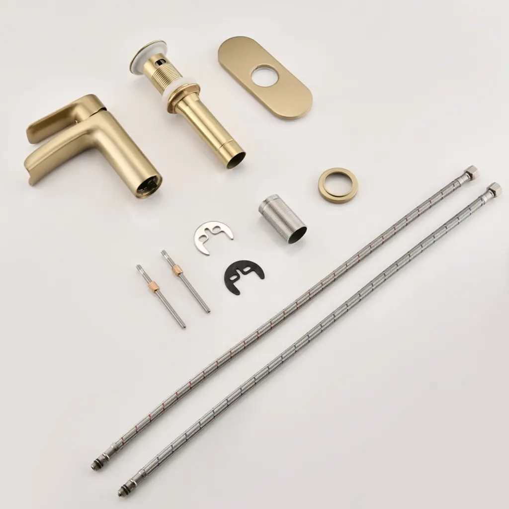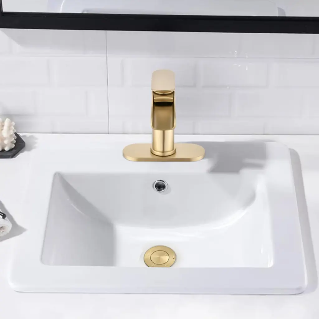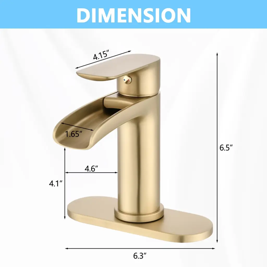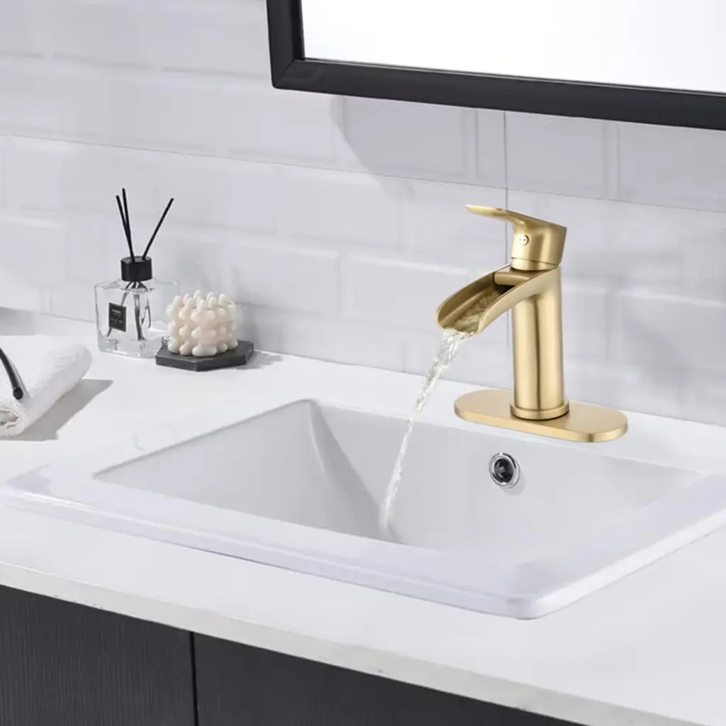 Proox Single-handle Single Hole Waterfall Spout Bathroom Faucet With Deck Plate In Brushed Gold