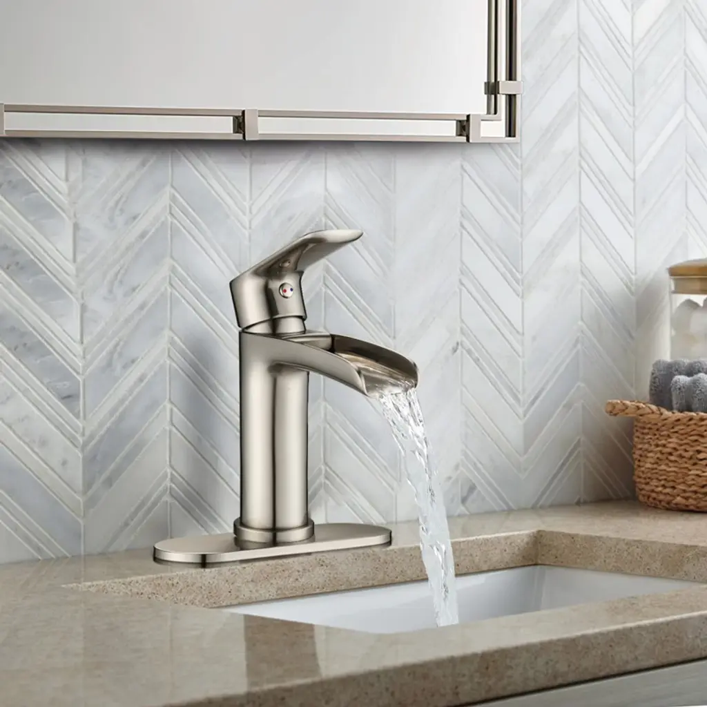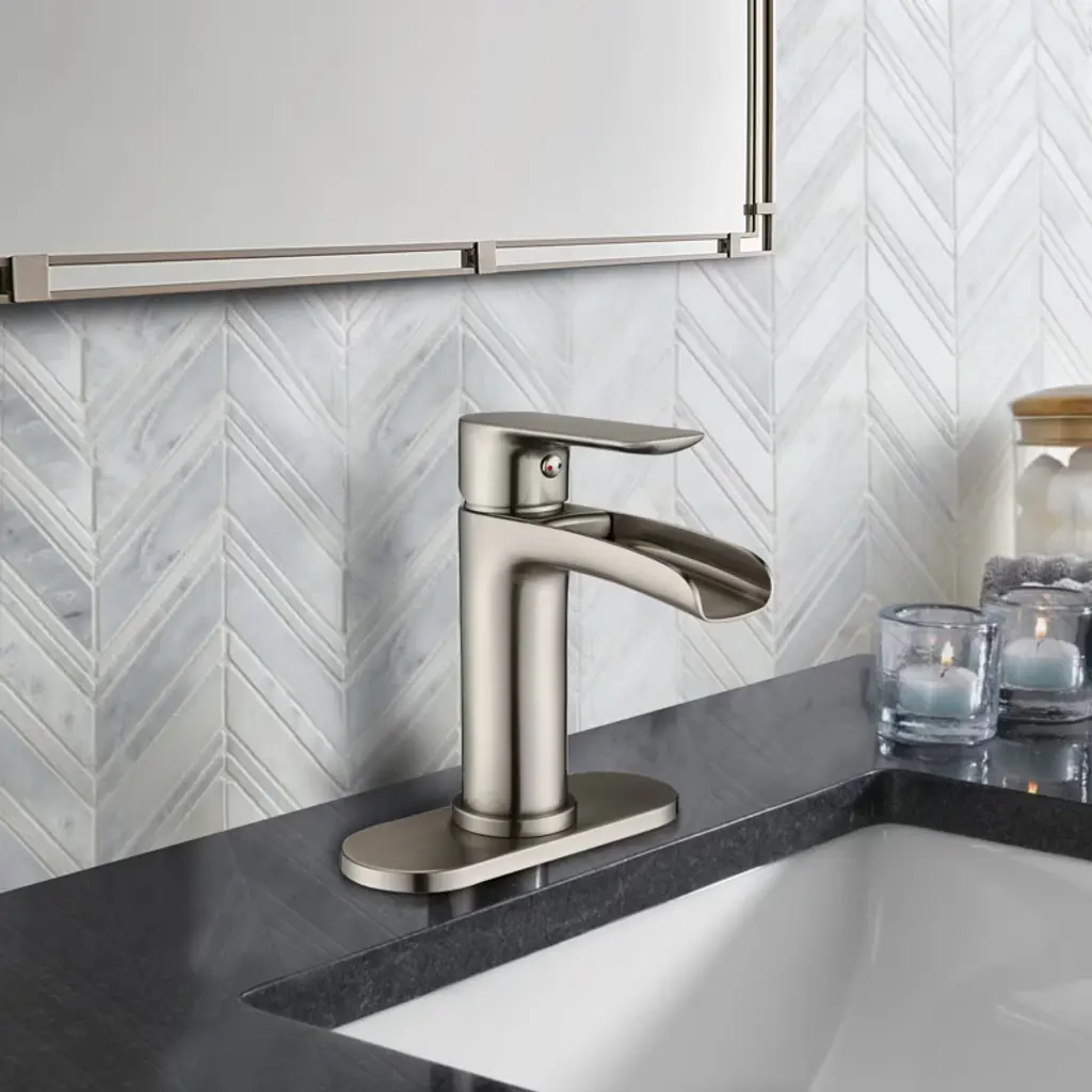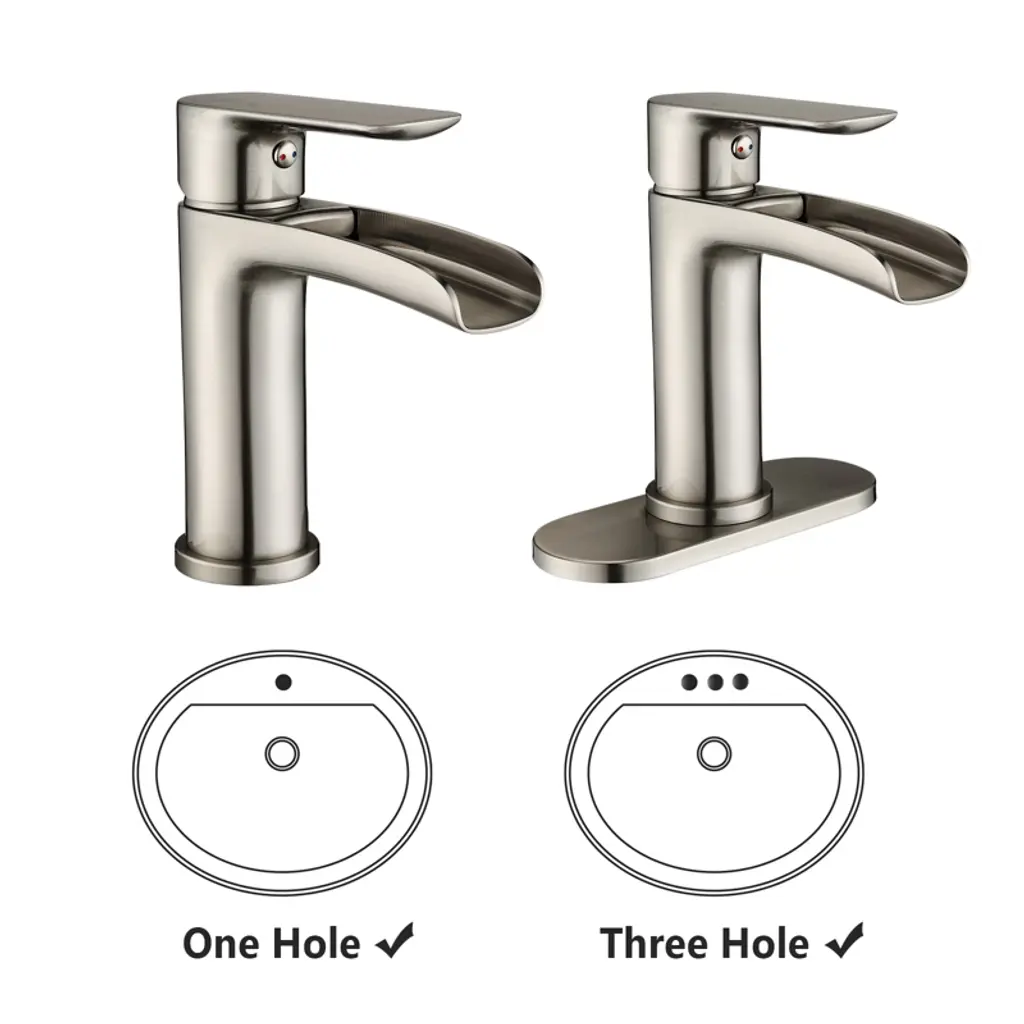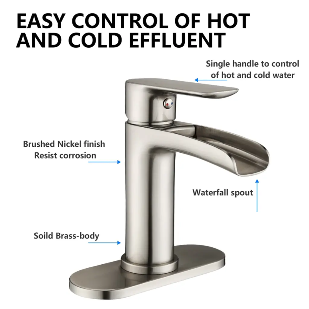 Proox Single-handle Single-hole Waterfall Spout Bathroom Faucet With Deck Plate In Brushed Nickel
