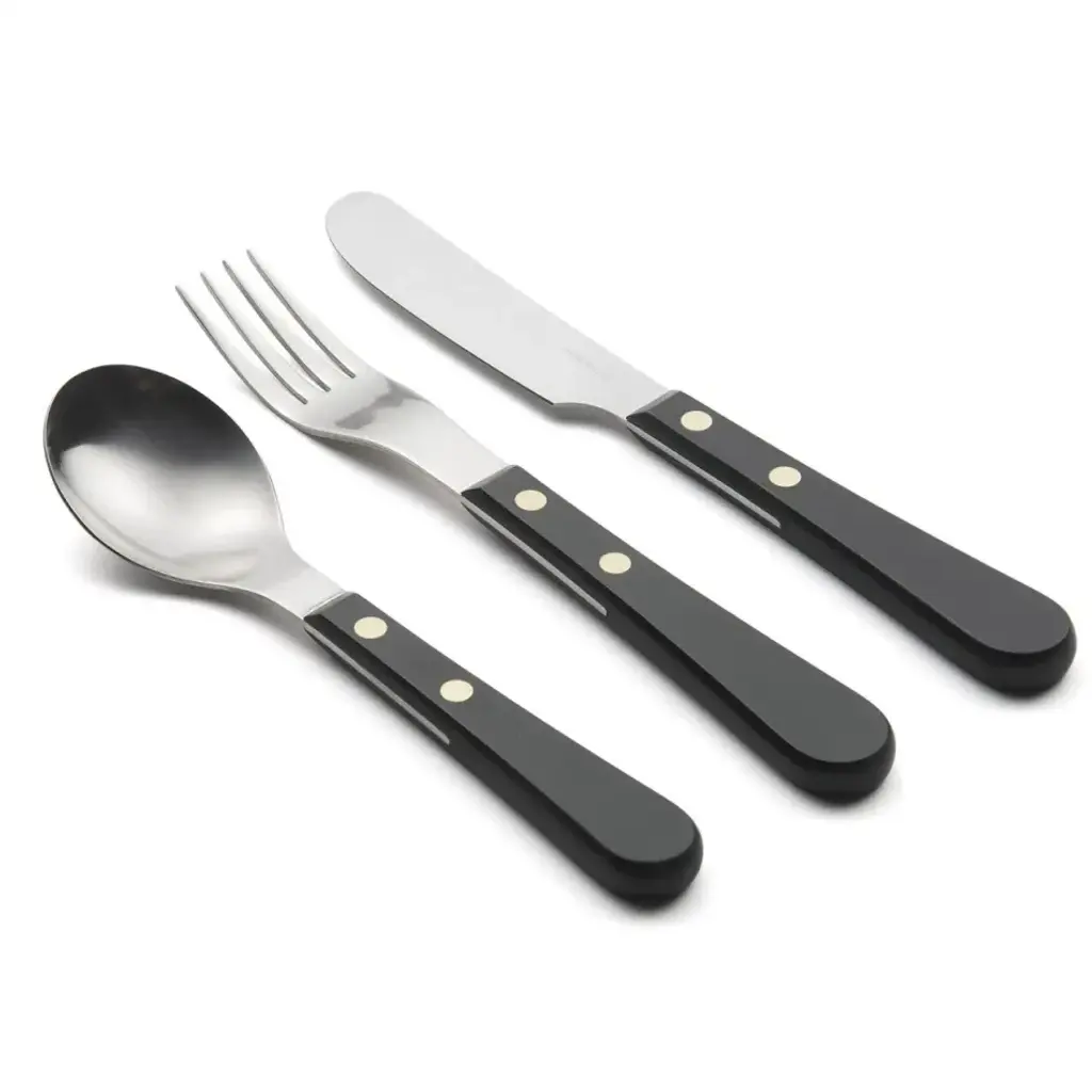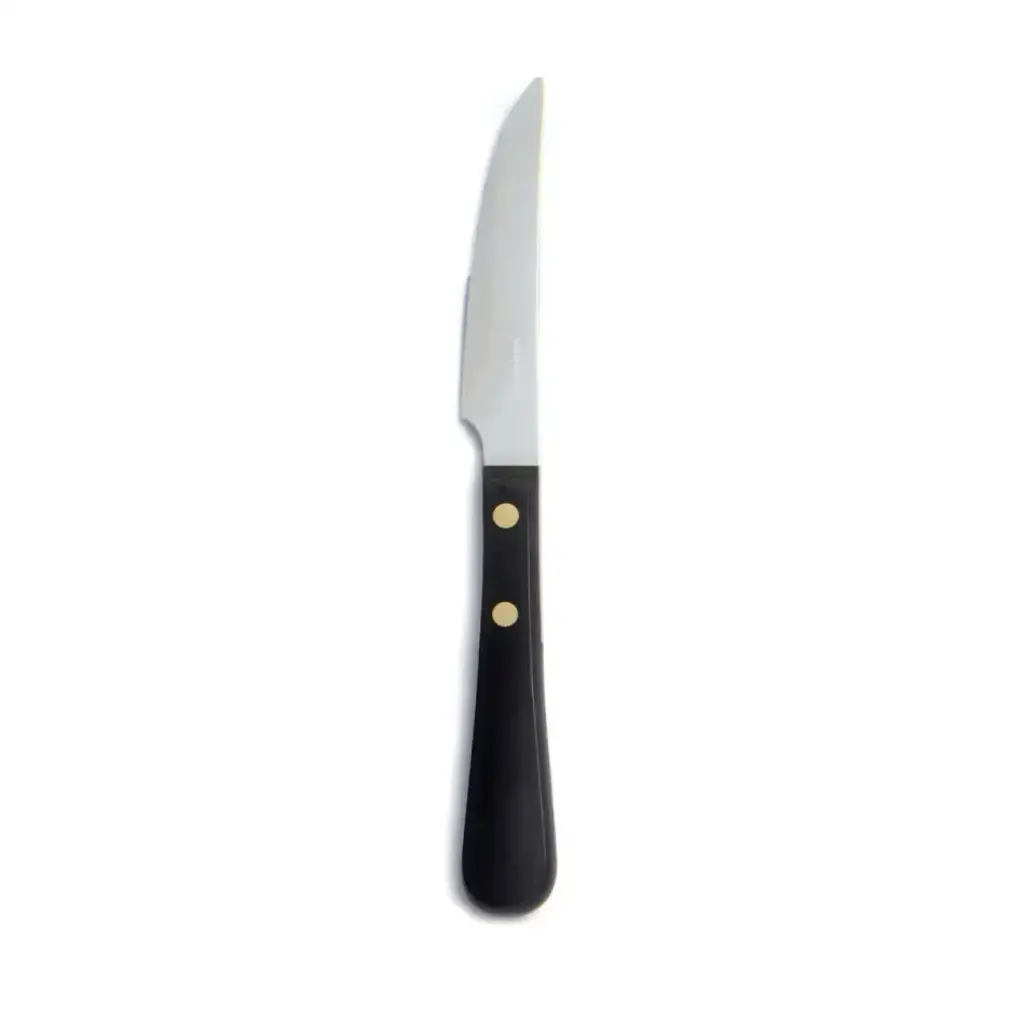 Provençal is exceptionally pleasant and practical to use. Knife blades are top grade stainless steel with high carbon content, ensuring a sharp cutting edge. Handles are acetal resin with brass rivets. Contains 6 serrated Provençal knives, each in its individual slot.