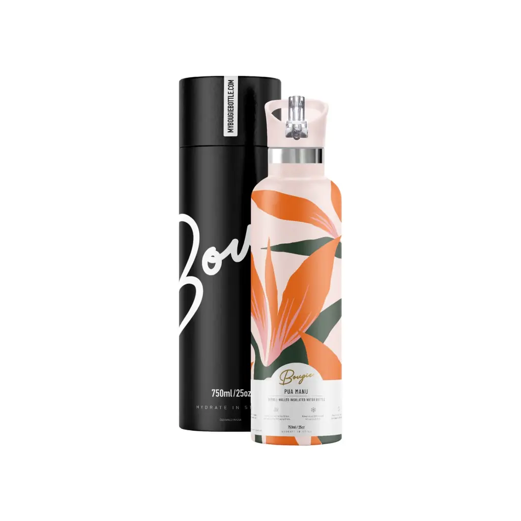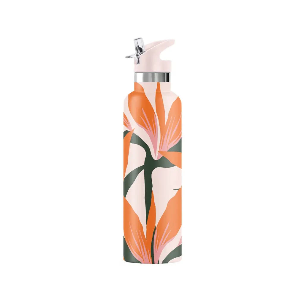 Evoking a sense of paradise and tropical bliss, the Bird of Paradise flower is associated with joyfulness and paradise due to its colorful and exotic appearance.Inspired by modern designs of the Hawaiian Islands, this striking bottle is an essential accessory for those vacay days away or at home. This reusable 25oz. stainless steel bottle means you can stay hydrated while reducing your plastic consumption.So enjoy the refreshing pure taste of cold water sipped from our convenient Flip ‘n’ Sip Straw Lid or toting an entire bottle of chilled wine to share with your besties! Stay hydrated, feel cool, and know you’re sustainably bougie!