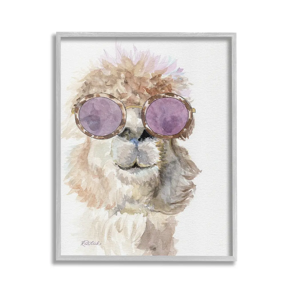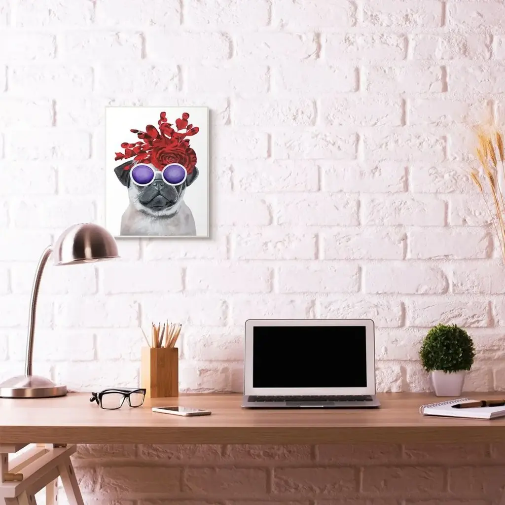 Pug Dog With Flower Hat And Purple Glasses, Canvas, 11"x14"