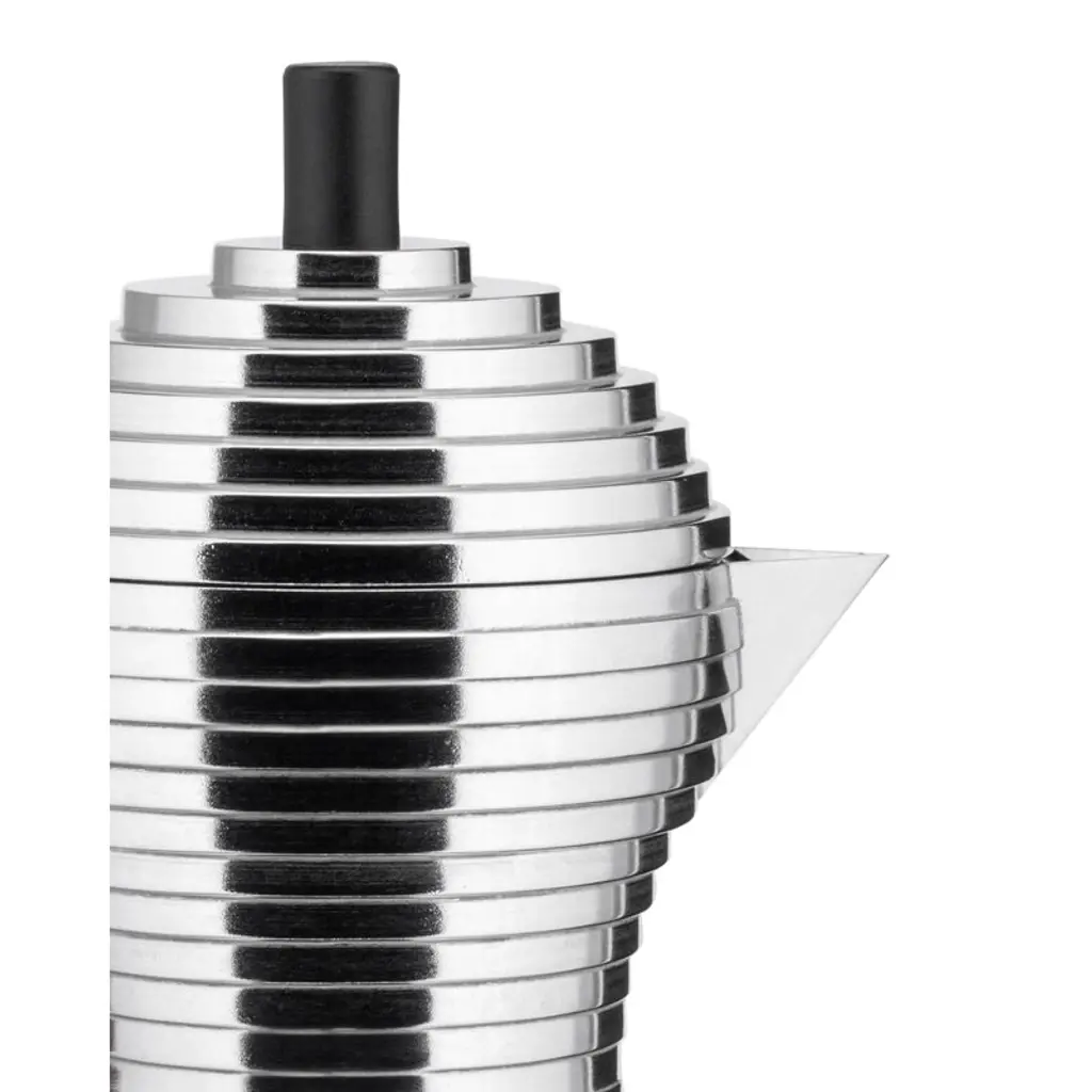 Alessi’s Pulcina espresso maker combines Michele de Lucchi’s unique esthetic style with high-quality Italian design. Launched in 2015, Pulcina has an eye-catching, flowing shape consisting of small layers and complemented with a bold, angular handle. The espresso maker’s innovative design stops the brewing exactly at the right time to prevent your coffee from getting a bitter aftertaste. Pulcina is Italian for chick, referring to the shape of the small, drip-free spout.
