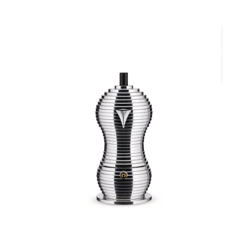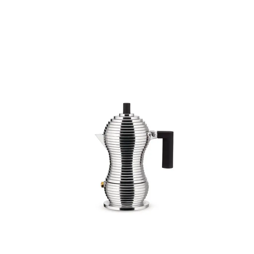 Alessi’s Pulcina espresso maker combines Michele de Lucchi’s unique esthetic style with high-quality Italian design. Launched in 2015, Pulcina has an eye-catching, flowing shape consisting of small layers and complemented with a bold, angular handle. The espresso maker’s innovative design stops the brewing exactly at the right time to prevent your coffee from getting a bitter aftertaste. Pulcina is Italian for chick, referring to the shape of the small, drip-free spout.