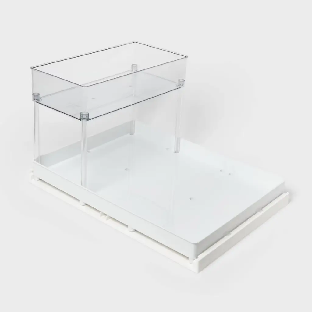 Pull Out Cabinet Organizer, Slide Out Drawer for Kitchen Cupboard, Extendable Shelf Storage,No Punch for Kitchen Cabinets, Bathroom Cabinet Organizer,Pantry,White