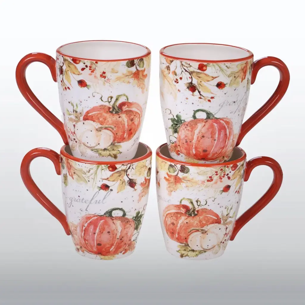 Inspired by a walk through the lively street markets in Florence, the Pumpkins Assorted Mugs - Set of 4 is a playful yet sophisticated take on the fall harvest. Since 1983, Vietri has specialized exclusively in Italian handcrafted ceramics, stainless and pewter flatware, mouth blown glassware, lamps, urns and planters. Families of artisans with 3 or 4 generations of history create these special pieces using centuries-old techniques. The subtle color from a paintbrush and the curving stroke of the artist's hand are never repeated in quite the same way, making each piece truly unique.