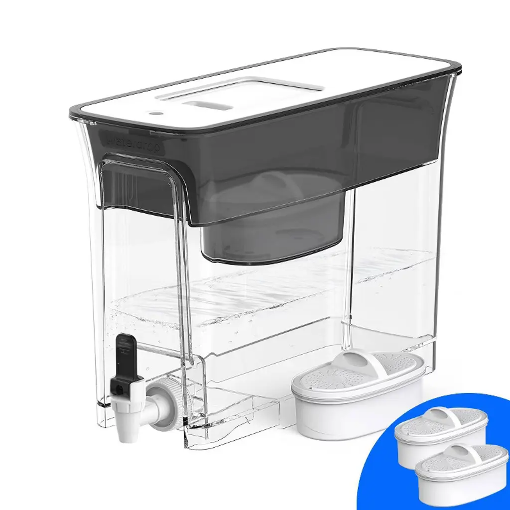 For over 35 years, PUR has been at the forefront of water filtration, dedicated to providing everyone with cleaner, better-tasting drinking water. The expertly engineered water dispensers and pitchers transform your tap water at home by removing chemical and physical substances, including Lead. Notably, PUR was the first to assist Flint during their Lead water crisis, showcasing their commitment to clean water for all. With the PUR PLUS large water filter dispenser, enjoy great-tasting water every day. The 30-cup counter top and fridge water dispenser serves the whole household, with each filter lasting up to 40 gallons or 2 months of use. The filter indicator light ensures you know when it’s time for a replacement, while the LockFitTM design prevents mixing of unfiltered and filtered water. Why Choose A PUR Plus Lead Reducing Pitcher Filter? PUR's advanced 3-in-1 water filtration technology combines granulated activated carbon, ion exchange materials, and advanced pleated paper to reduce three times more chemical and physical substances* than Brita's leading pitcher filter**. Certified by WQA for Lead reduction and NSF for microplastic reduction*, PUR reformulated its Lead water filters after seeing real-world Lead scenarios in Flint and Newark. With an easy installation process, convenient pull-down spout for easy pouring, sturdy handle for effortless refilling & a slim design that fits in the fridge, this large water dispenser really is PUR bliss. Disclaimers * See Product Data Sheet for what this filter reduces. ** Versus best-selling Brita® pitcher filter OB03. Brita® is a trademark of Brita LP. *** Based on comparing a year’s worth of bottled water (16.9 oz) to a PUR system and 5 filters. ****Based on Nielsen sales data for lead reducing filters in the pitcher and faucet mount segments for 52 weeks ending 8/24/2024.