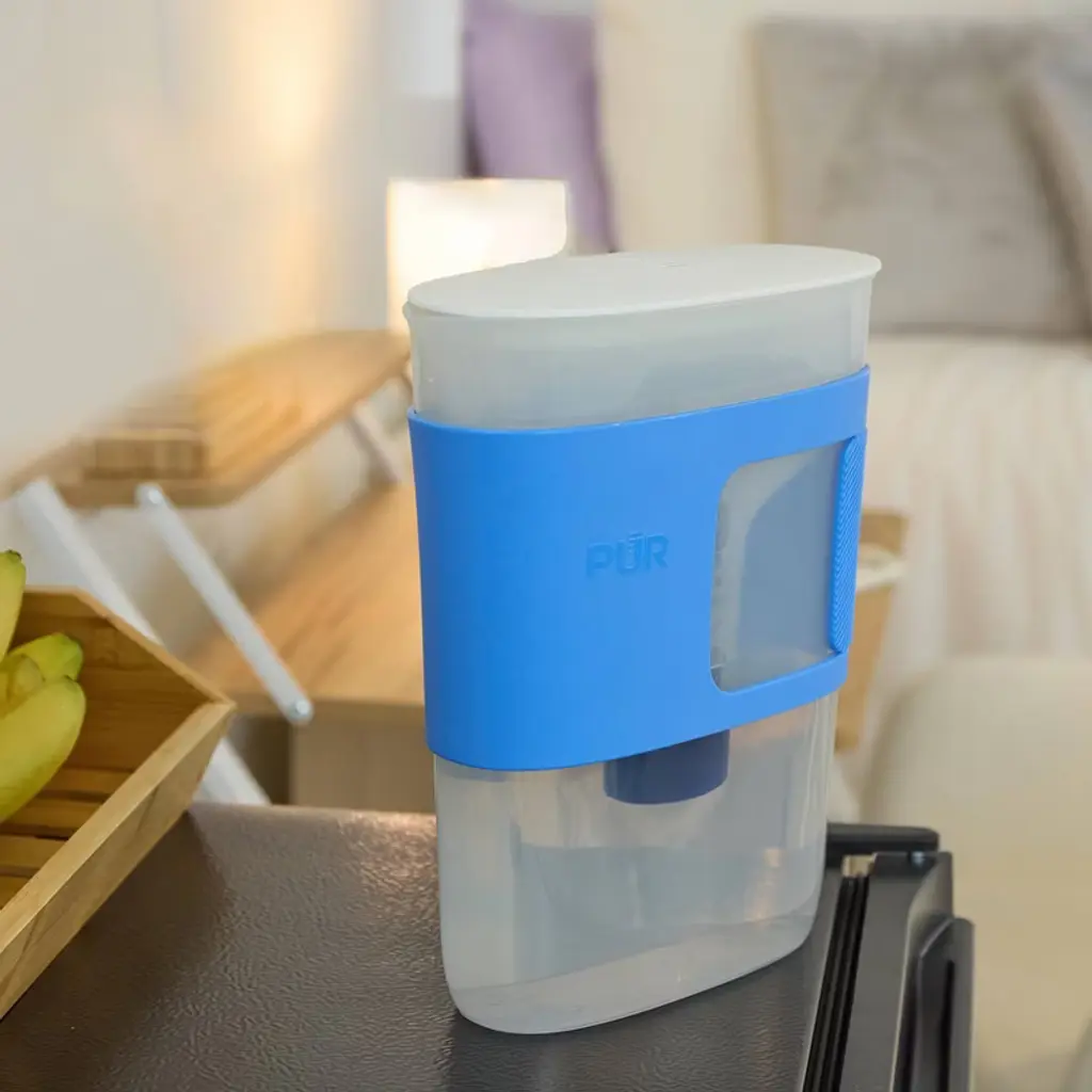 Introducing the PUR 8 Cup Slim Water Filter Pitcher - your slimmest, space-efficient solution for cleaner, great tasting drinking water. Designed for tight spaces and tighter budgets, the PUR Slim Pitcher gives you premium performance without the premium price. Bundle with the PUR 3 value Pack Filters, PPF900Z3, to enjoy 6 months of powerful, faster water filtration*. Though compact, there's no sacrifice on performance. The fast-acting water filter reduces chemical and physical substances including chlorine, giving you great-tasting water, with less waiting time. The re-designed sleeve ensures a comfortable, precise pour every time. Easily meet your daily water goal with just one fill, great for everyday use. Made to fit your space, this slim design easily slides into mini fridge doors, narrow countertop spaces, and small storage spaces like RVs and home offices. Whether you’re decorating your college dorm room or simply decluttering your home and kitchen, this apartment essential is the perfect blend of style and function – plus it comes in 3 colors to match your aesthetic! *Compared with PUR PLUS pitcher filter.