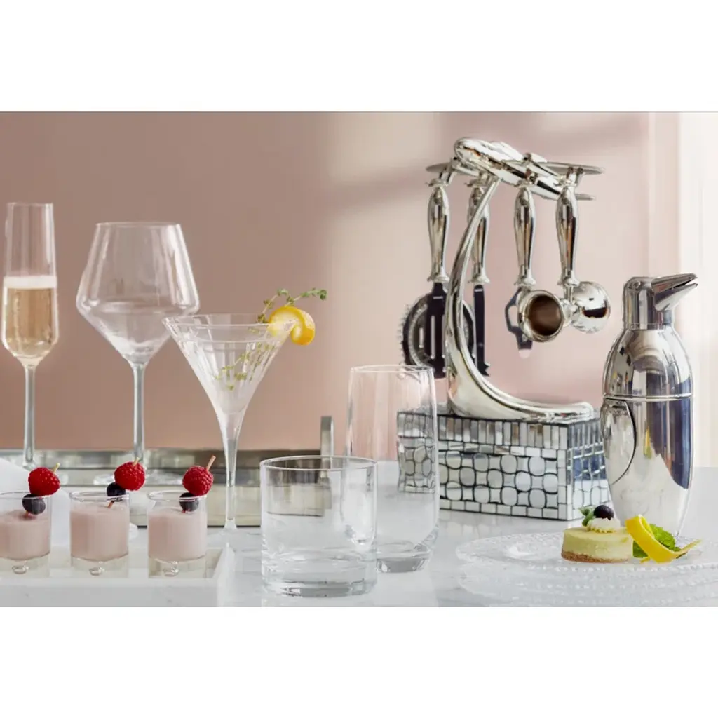 Stemware, simplified. With its streamlined silhouette and oversized bowl, this red wine glass effortlessly elevates an after-work drink, giving you and your Rioja room to breathe. It’s made from lead-free crystal glass that’s dishwasher safe, so it’s as easy to clean as it is to clink. Set of six.