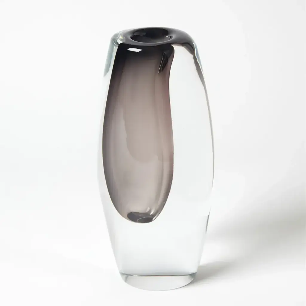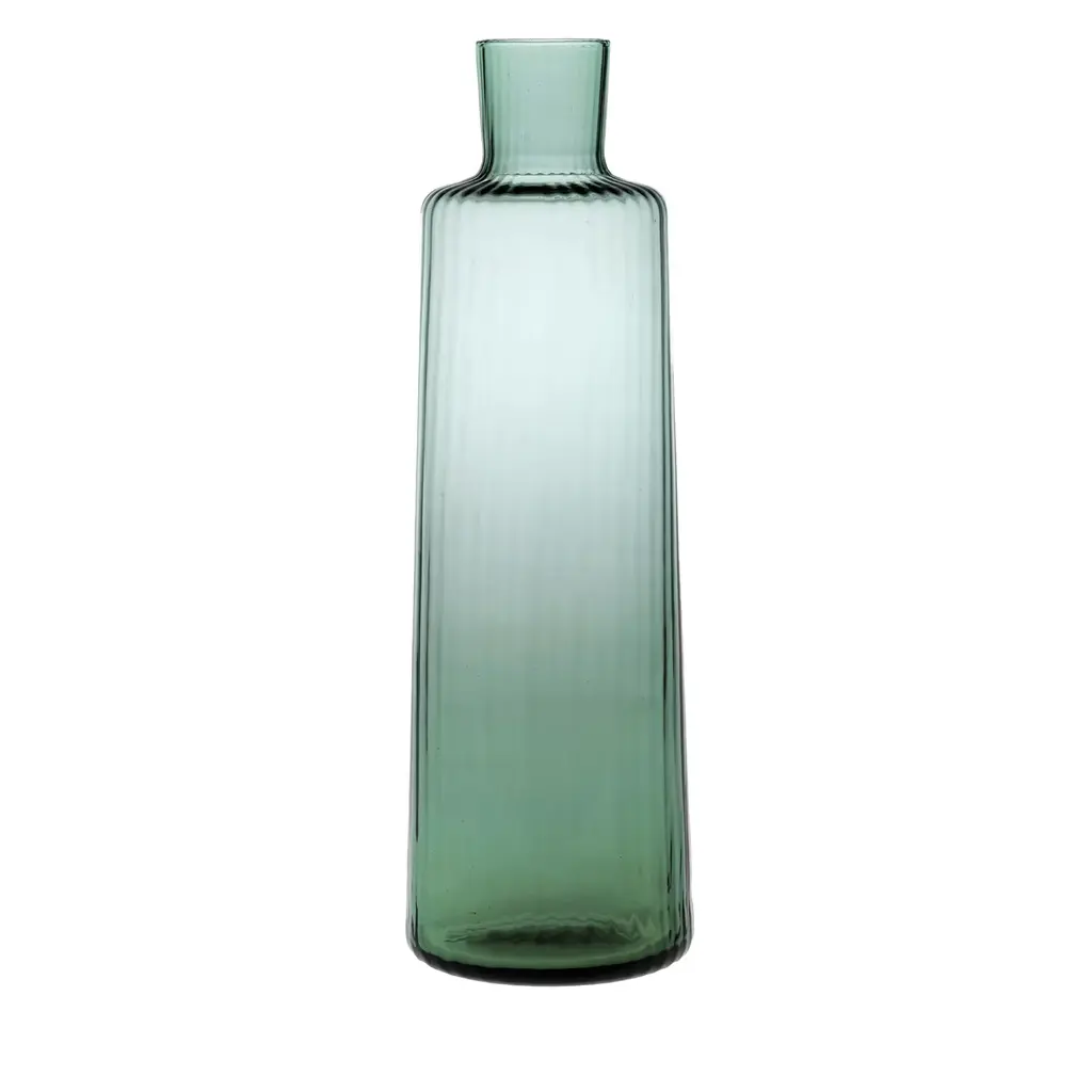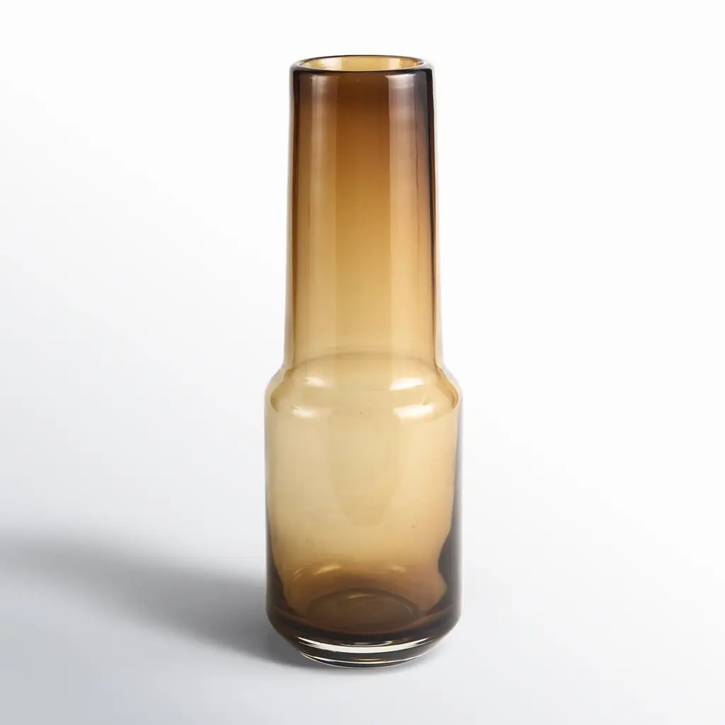 Part of the Puro collection, this tall bottle is distinctive for its exquisite craftsmanship and delicate amber color, applied in gradients to its smooth surface. Subtle and elegant, this versatile container can be used to serve drinks, as a vase, or simple accent in a classic or contemporary living room, especially if combined with other bottles of different colors from the same collection, for a dynamic and sophisticated effect.
