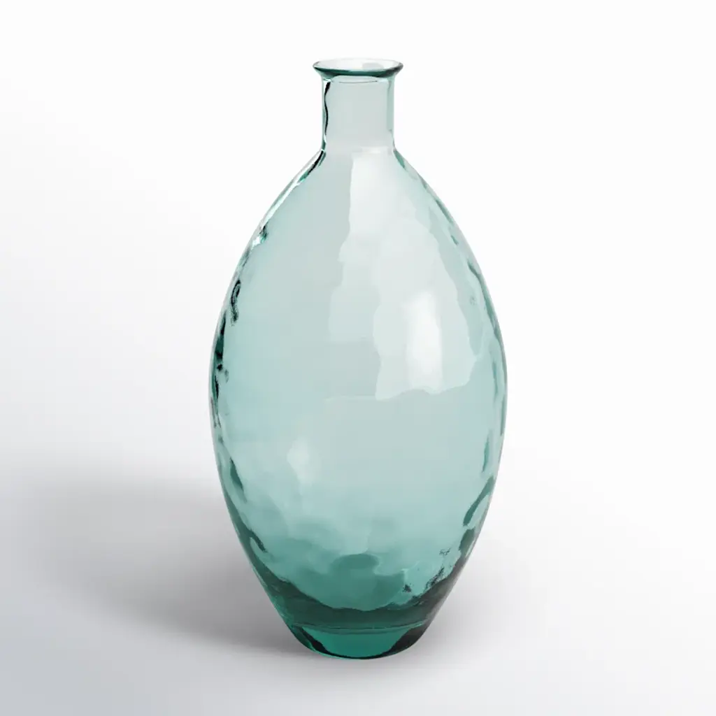 Enriched with a stunning mint-green hue that fades toward the top of the piece to return again on the small mouth, this short bottle is an elegant addition to any home and will add a touch of color to a bar cabinet or a living room. A perfect addition to any occasion, this bottle was crafted by hand of glass with a smooth finish and can be served and displayed with others from the same Puro collection for a colorful effect, or with the tall bottles by the same designer for a dynamic look.