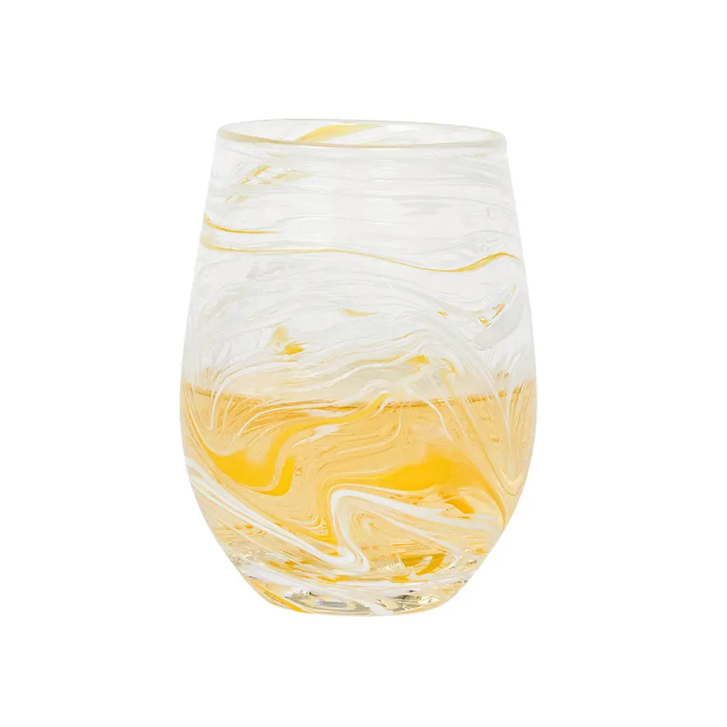Puro Marbled Stemless Wine Glass, Yellow
