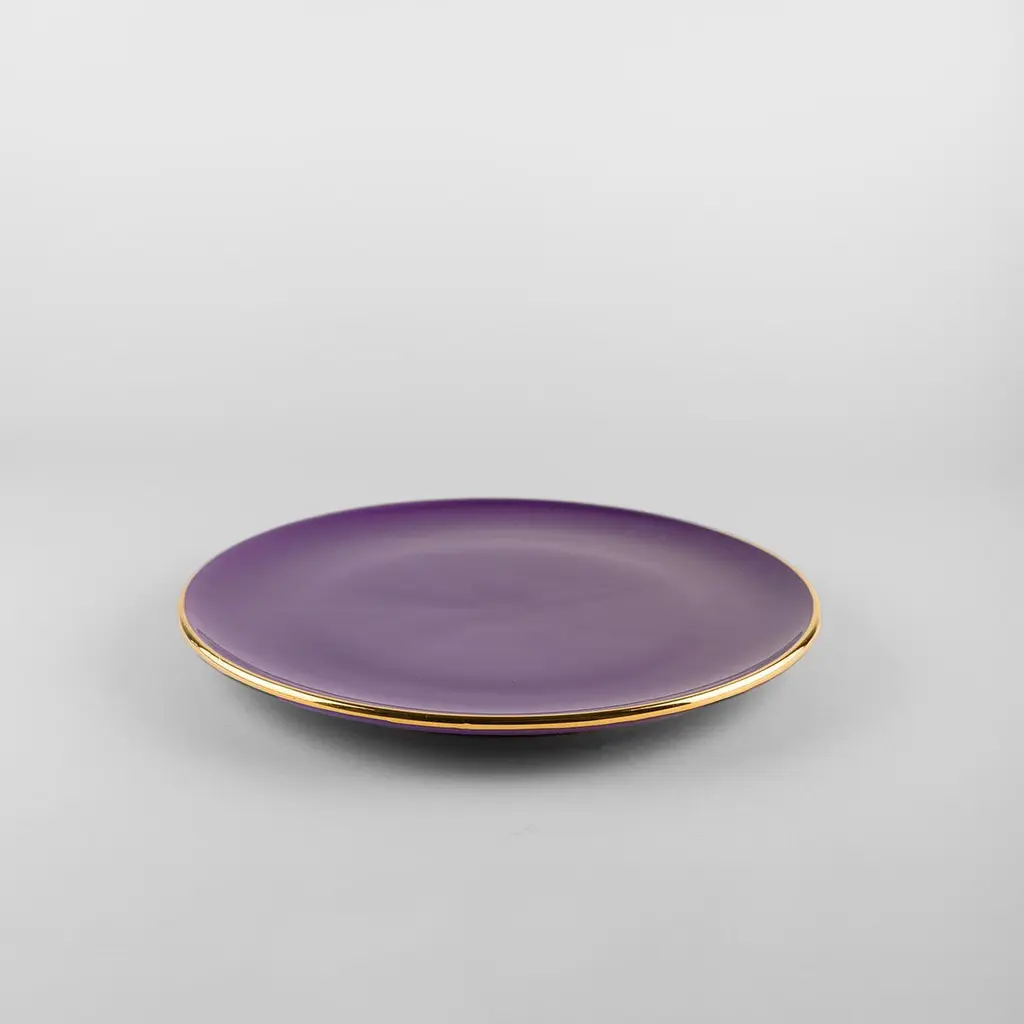 Purple Plates Gold Rim: Soup, Holder, Side Plate For 4. Handmade In Italy 2024