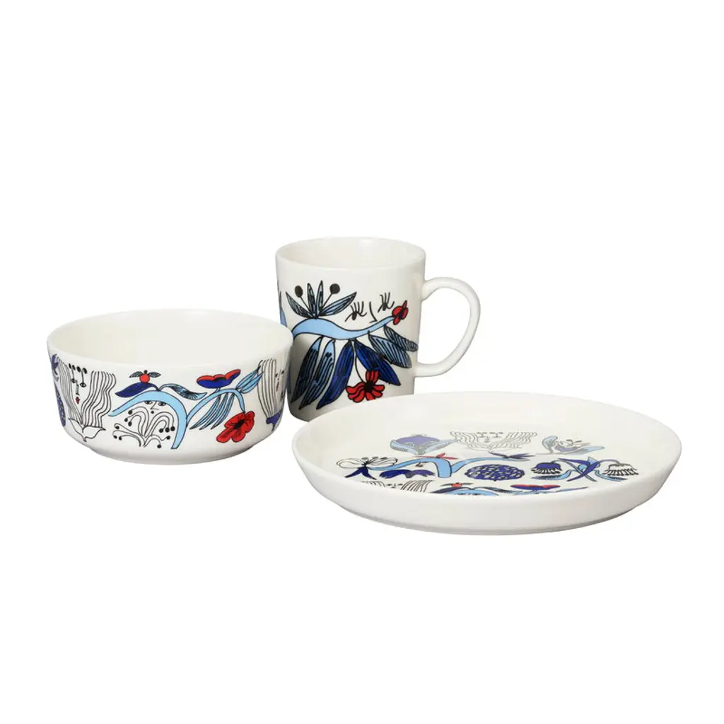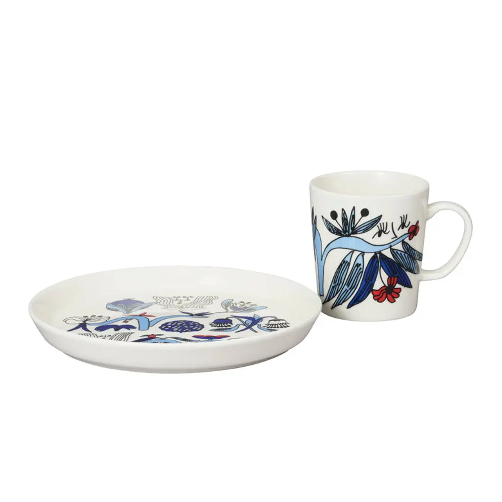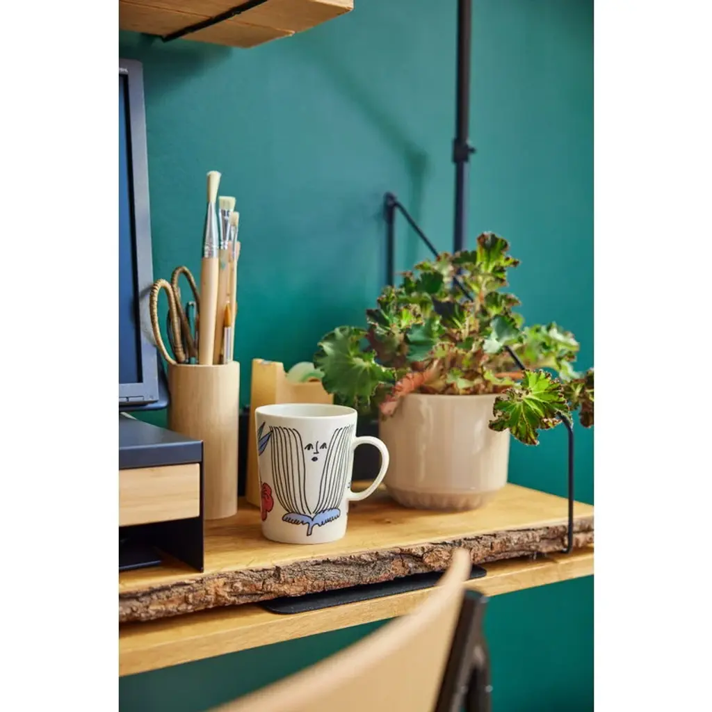Arabia's Puutarhurit mug is adorned with a lively pattern created by the artist Armi Teva. The design features whimsical creatures that are hidden among garden flowers and leaves. The 10.14 fl oz (3 dl) mug is suitable for various beverages, from morning coffee to afternoon tea or warming cocoa in the evening.