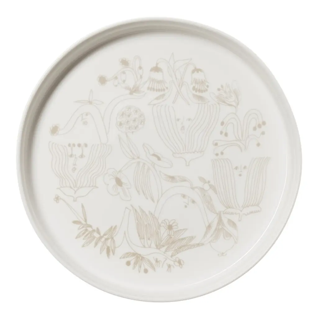 Arabia's Puutarhurit plate is adorned with a lively pattern created by the visual artist Armi Teva. The design features whimsical creatures that are hidden among garden flowers and leaves. The plate is suitable for serving appetizers or as a salad plate, for example.