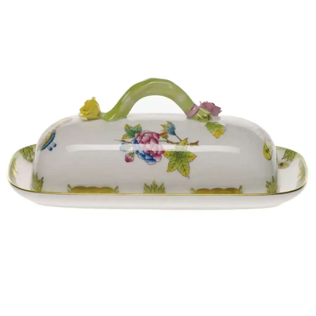 Queen Victoria Multicolor Covered Butter Dish 6 In D 3.5 In H