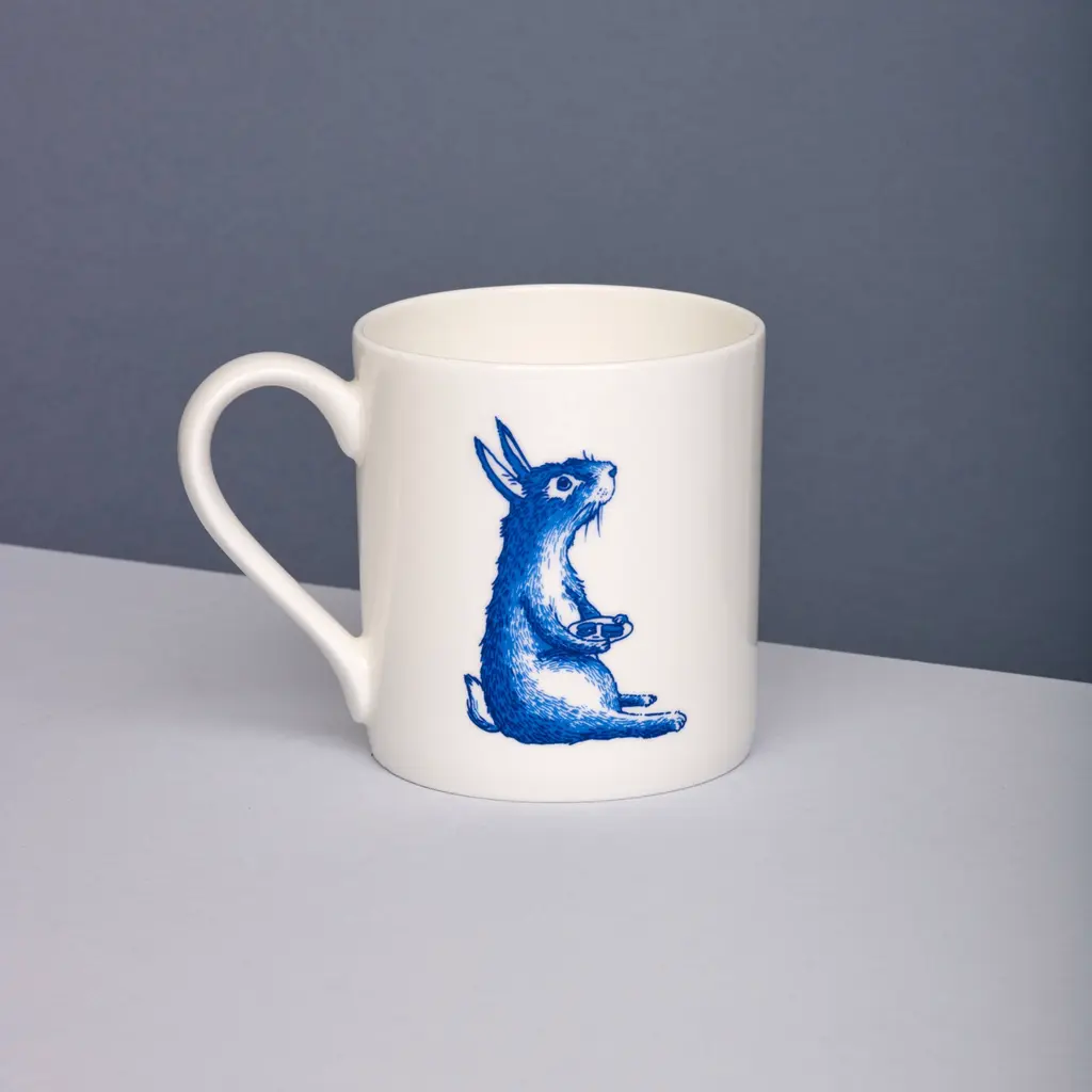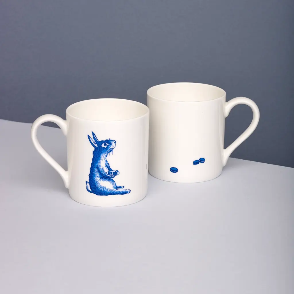 When Ms. Rabbit isn't eating macaroons, she's daydreaming of eating macarons.Nice size bone china tea mug, perfect for a decent cuppa! Hand decorated in the UK. Material: bone china Hand decorated in Stoke on Trent