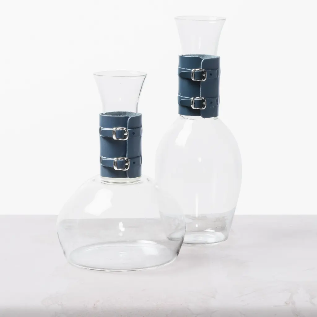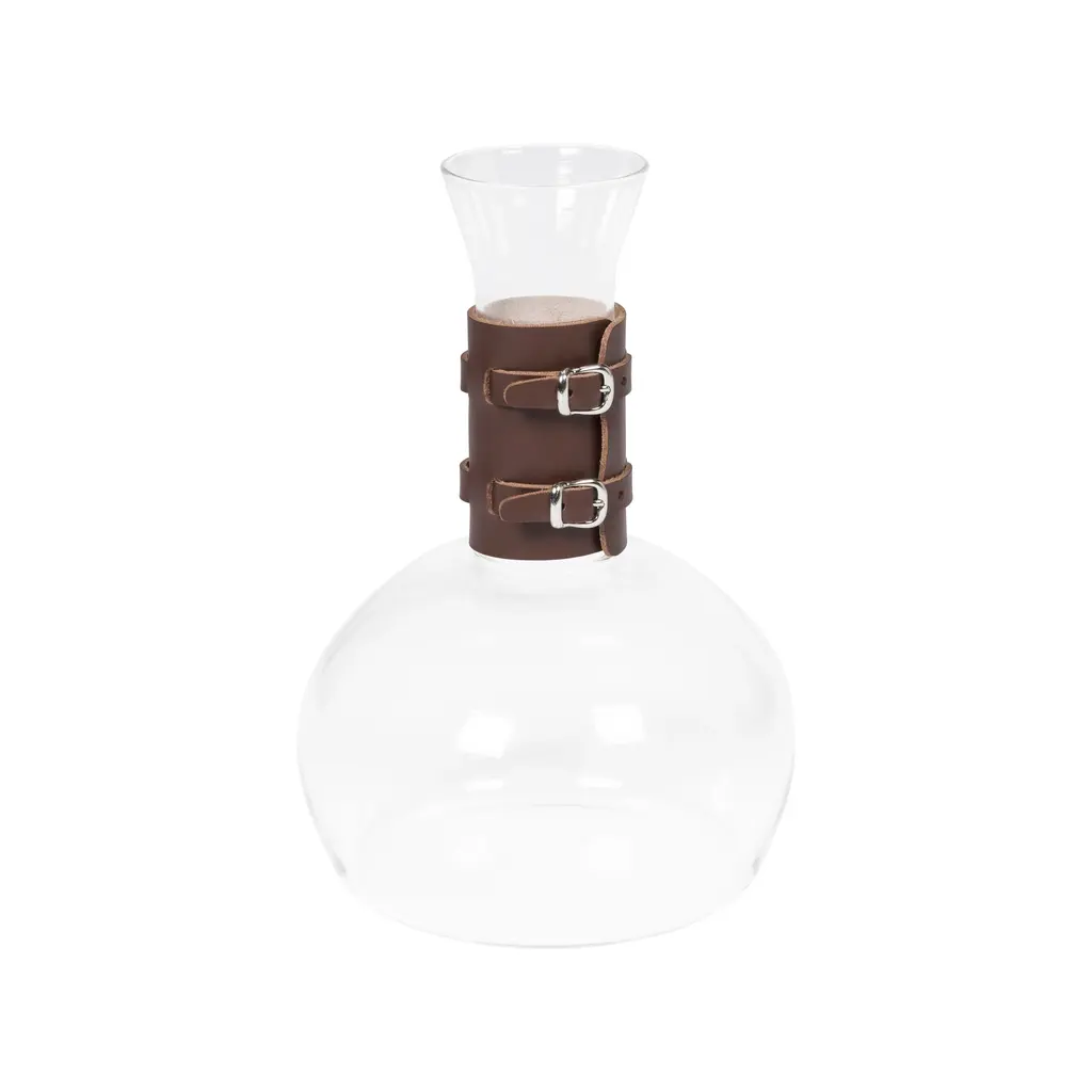 A masterful pairing of rugged elegance and refined transparency, the Rabitti 1969 Echo Pitcher from Rabitti 1969 elevates the art of serving. Crafted in Italy from durable borosilicate glass, it is handsomely wrapped in a removable saddle leather sleeve detailed with decorative buckles for a distinctive, sartorial touch. This stunning piece brings a warm, textural element to any table, perfect for serving everything from chilled water to cocktails with impeccable style. Highlights: