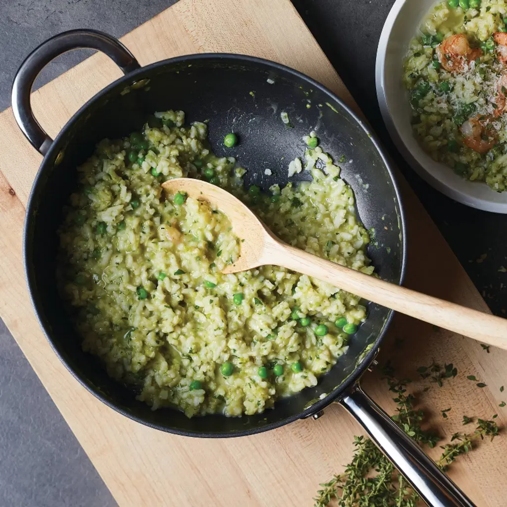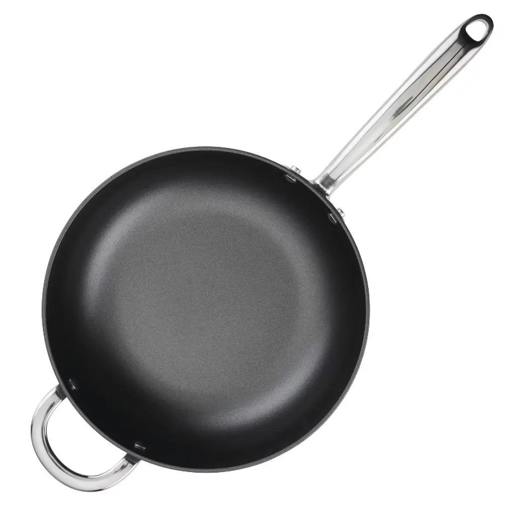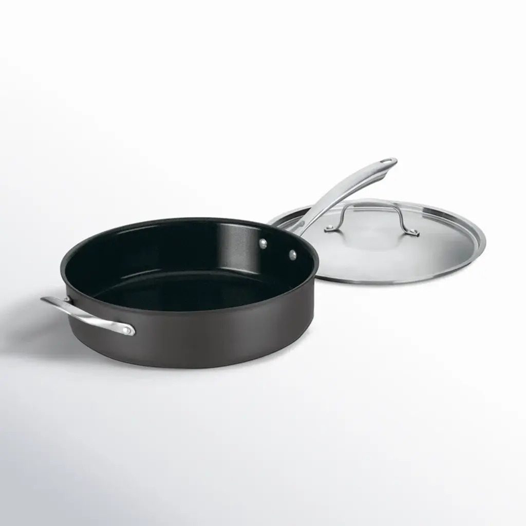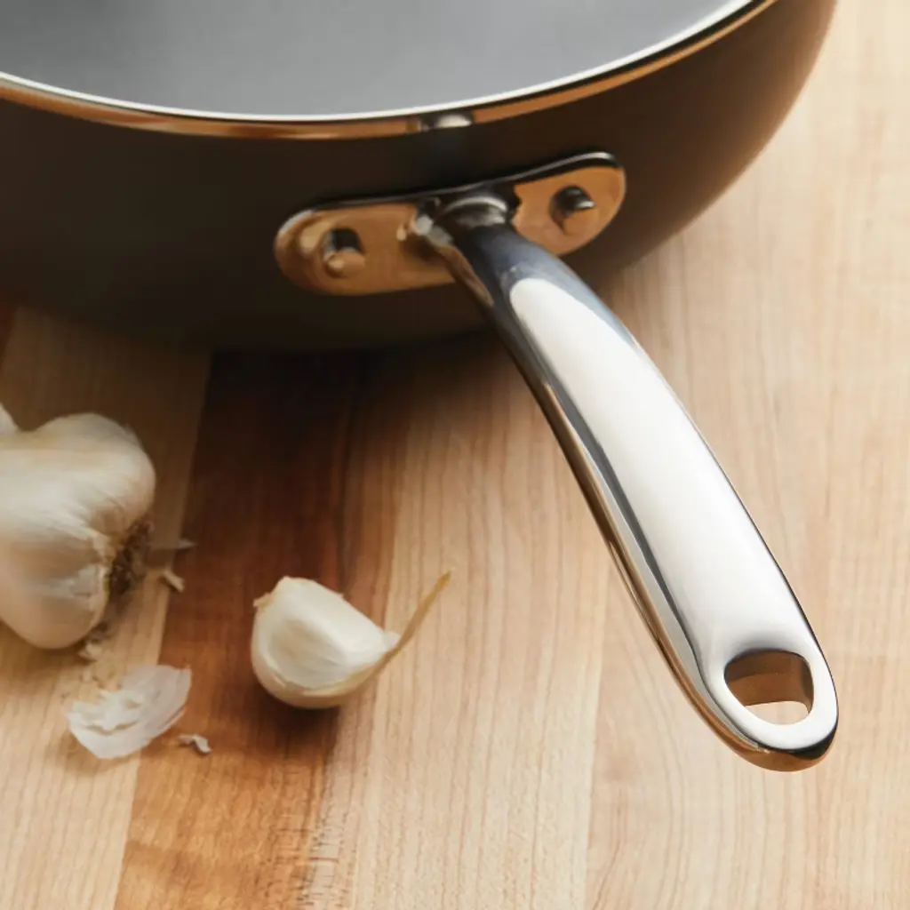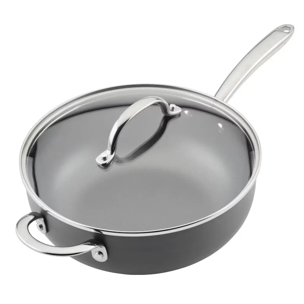 Bring flexibility and convenience into the kitchen with a versatile hard-anodized nonstick saucier pan from Rachael Ray. Take the guesswork out of sauce-making recipes with the right cookware on hand. Built with durability and performance in mind, this sleek hard-anodized saucepan maximizes results in the kitchen while making mealtime magic that brings people together. This pro-grade saucier delivers fast, even heat with dishwasher safe convenience and features deluxe nonstick for easy release of thick, rich sauces and meals. Double-riveted stainless steel handles (including a helper handle!) for comfort and confidence when stirring sauces and oven safe to 500° F for the perfect stove-to-oven finish.