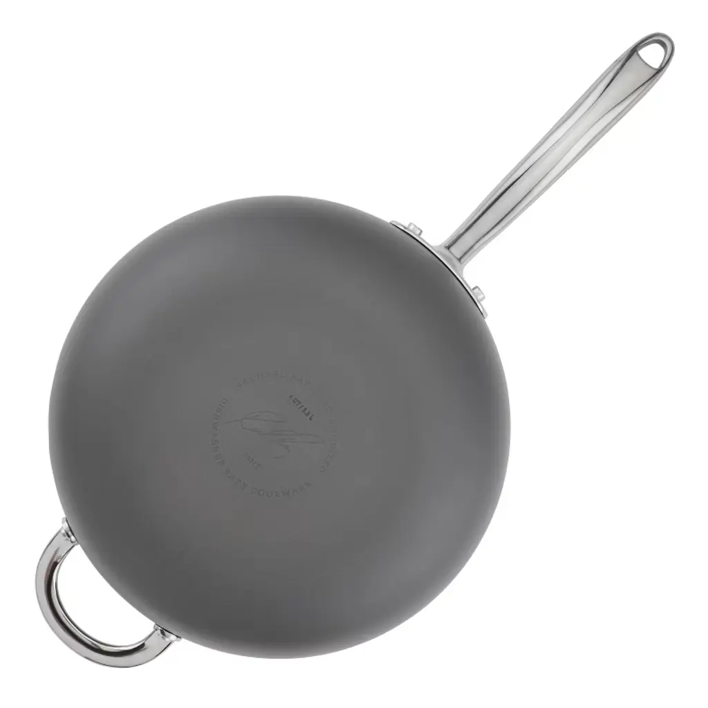 Rachael Ray 4Qt Hard Anodized Nonstick Saucier Saucepan With Helper Handle And Lid Gray: Dishwasher & Oven-safe, Tempered Glass Lid