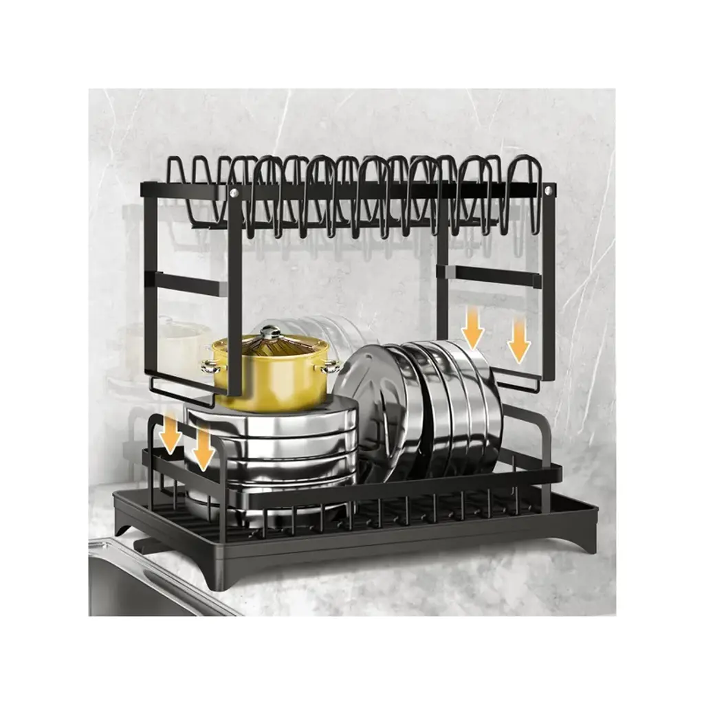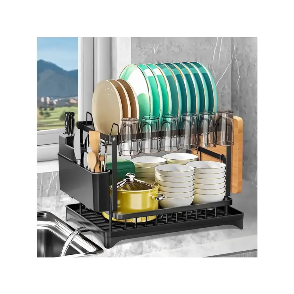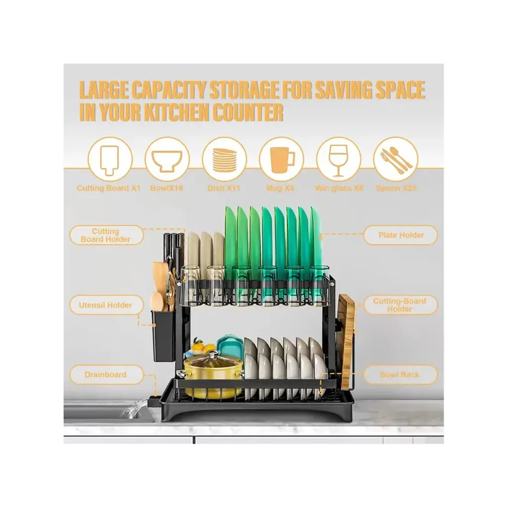 Racxily 2 Tier Dish Racks For Kitchen Counter, Dish Drying Rack With Dish Drainer, Durable Stainless Steel Dish Rack Drain Set With Utensil Holder